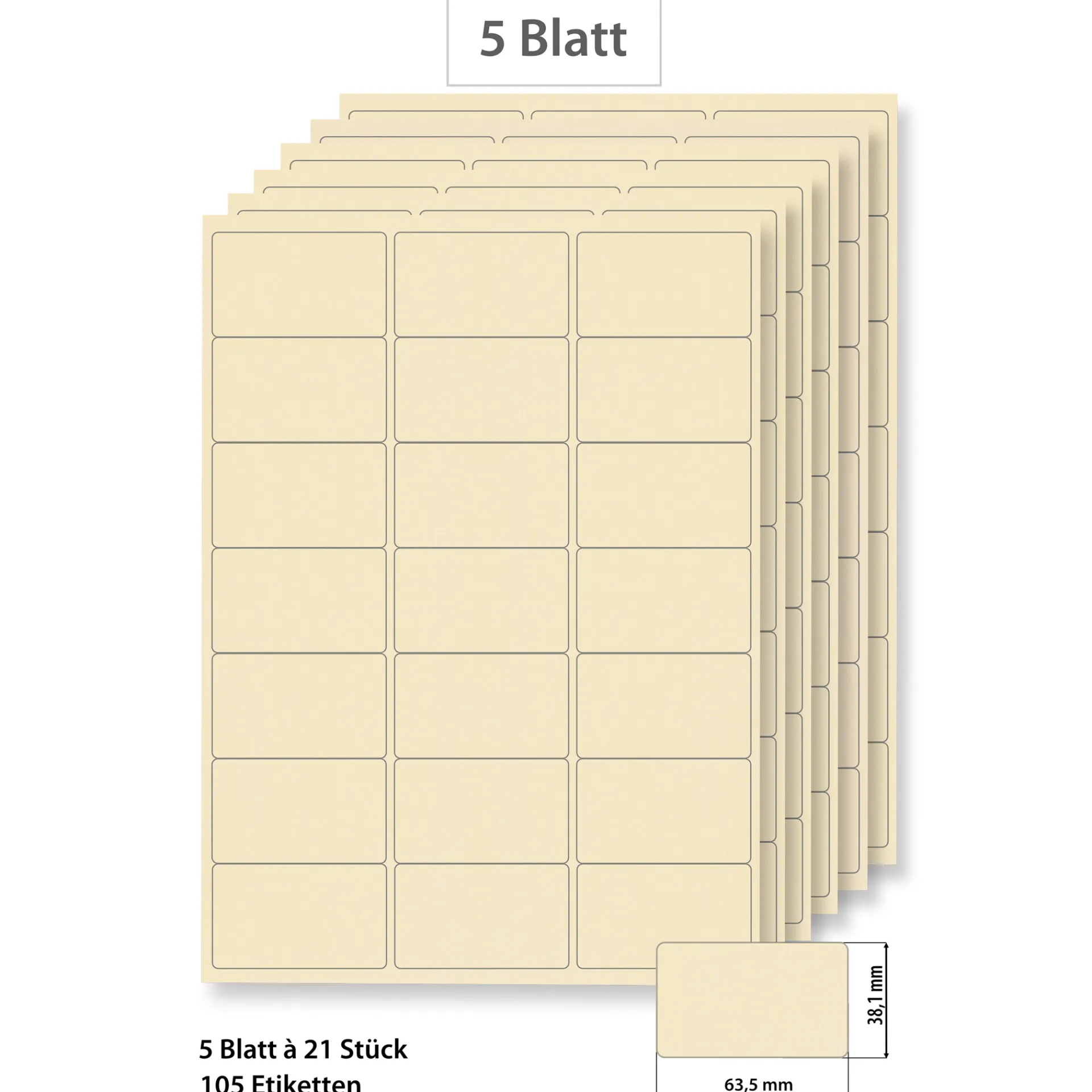 Informationen zum Artikel: Steffis Etiketten 63,5 x 38,1 mm creme – 5 Blatt A4