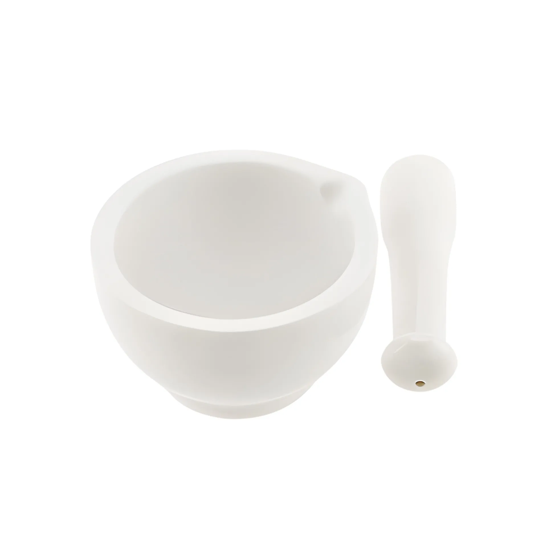 Mörser mit Ausgusslippe und passendem Stößel aus Porzellan. Die Außenseite und das Griffstück sind für angenehmen Halt glasiert, die Innenseite des Mörsers und der untere Teil des Stößels sind naturbelassen, damit Kräuter und Gewürze optimal zerkleinert werden können. Die Größe des Mörsers ist sehr handlich und er eignet sich auch für kleinere Portionen.