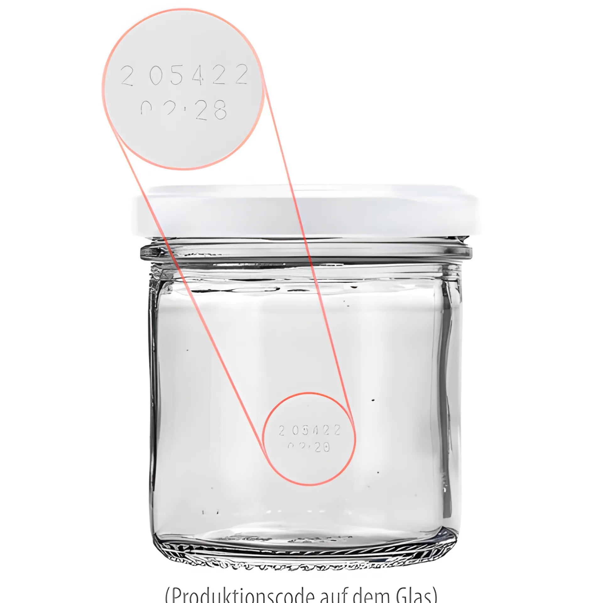 Bitte beachten Sie: Auf dem Glas befindet sich ein Produktionscode (kleine Gravur), der eine einfache Nachverfolgbarkeit ermöglicht. So kann das Sturzglas immer eindeutig einer Charge zugeordnet werden.
