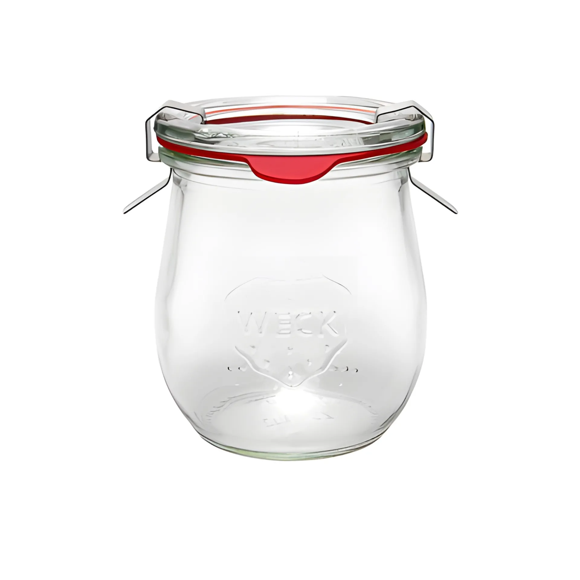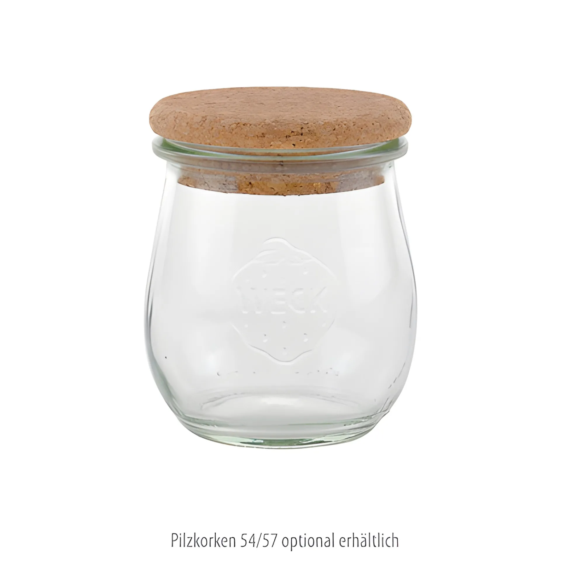 Dieses Mini-Glas aus dem Hause WECK bezaubert durch seine hübsche Tulpenform und sein kleines Format. Mit einem Volumen von 220 ml eignet es sich perfekt zum Einwecken von Marmelade und Gelee oder sauer eingelegte Mix Pickles, die direkt in dem schönen Glas serviert werden können. Nimmt man den traditionellen WECK-Verschluss mit rotem Gummiring und den Metallklammern ab, kann man das Glas mit dem aufgelegten Glasdeckel oder Frischhaltedeckel vor dem Servieren prima im Kühlschrank aufbewahren. So kommt man später schnell an die Leckereien. Durch die breite Öffnung lässt sich der Inhalt leicht einfüllen und ganz einfach herauslöffeln.