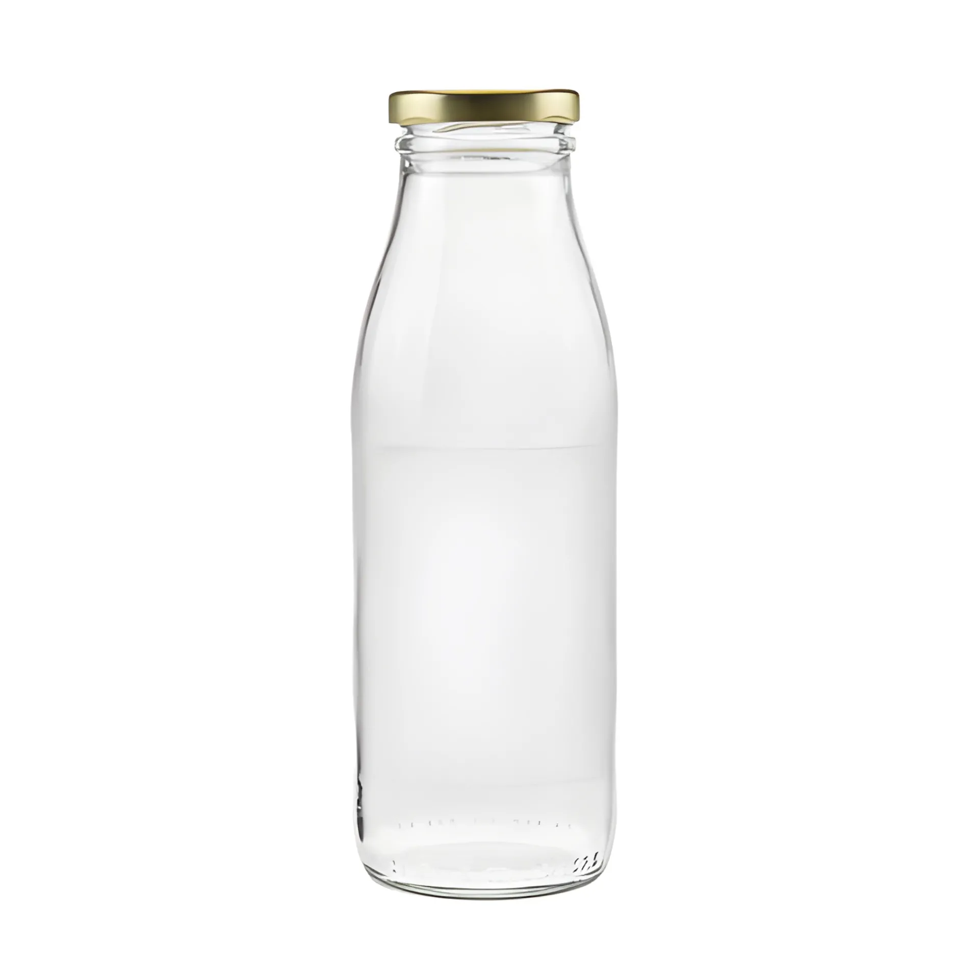 Formschöne Glasflasche mit einem halben Liter Fassungsvermögen, die sich sehr gut für Sirup, Saft, Milch und Soßen eignet. Dank der weiten Öffnung können auch dickflüssige Tomatensoße und Ketchup in der klassischen Abfüllflasche eingekocht werden. Eine gut sichtbare Etikettierfläche mit einer Höhe von ca. 83 mm und einem Durchmesser von etwa 67,5 mm sorgt dafür, dass Banderolen, Etiketten und Labels exakt auf der Milchflasche angebracht werden können.