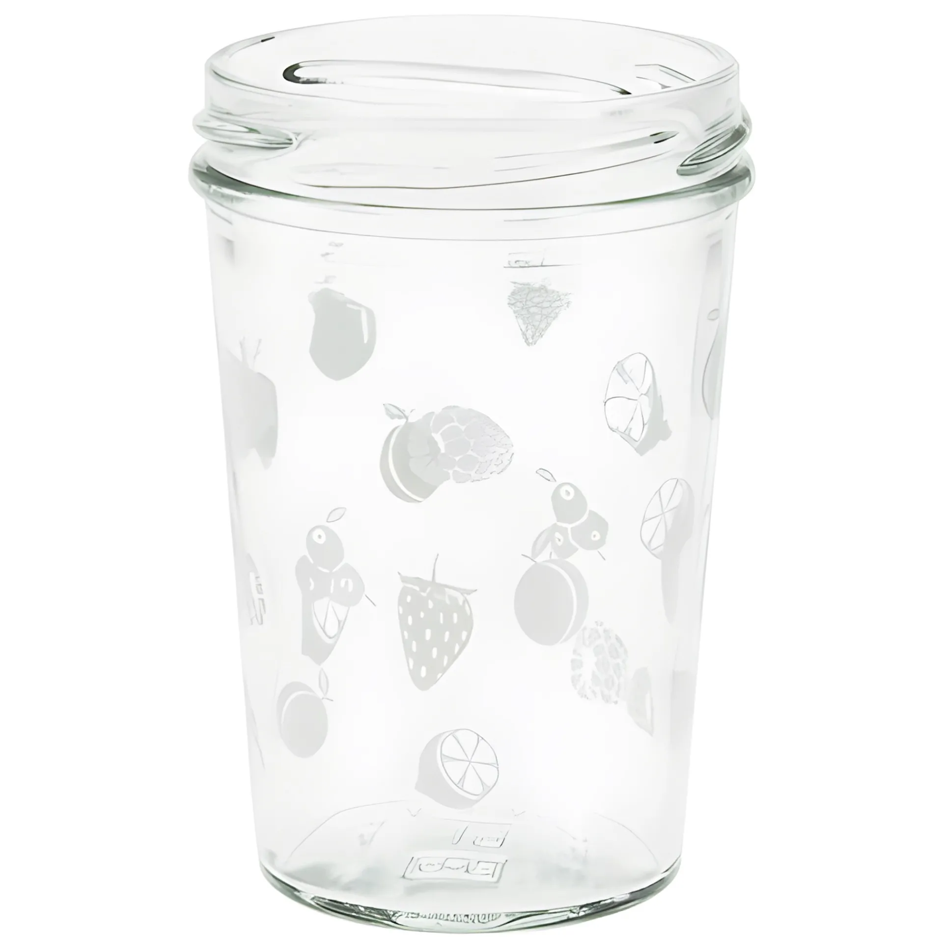 Jetzt wird es fruchtig! Ob Getränke, Smoothies, Joghurtdrinks oder Tee: Aus diesem schönen Sturzglas in Becherform können Getränke aller Art genossen werden. Das Glas ist mit verschiedenen Früchten in Weiß bedruckt, was es zum perfekten Gefäß für frische Obstvariationen macht. Kombiniert mit einem Twist-Off-Deckel wird es zum perfekten Marmeladenglas, dank der Sturzform eignet es sich auch hervorragend für kleine Kuchen im Glas und als Dessertbecher.