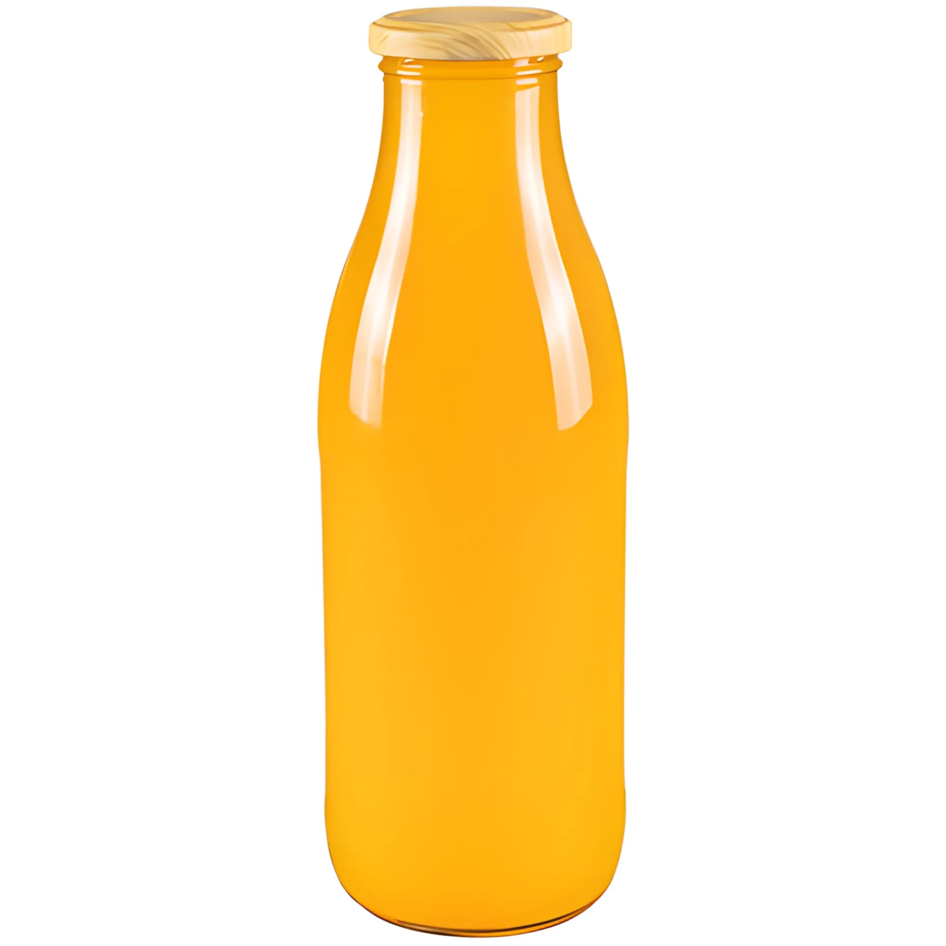 Elegante Glasflasche mit großer Öffnung, die sich sehr gut zum Abfüllen von Saft, Milch, Sirup und Soßen eignet. Sie lässt sich gut reinigen und ist auch für die Heißabfüllung geeignet.