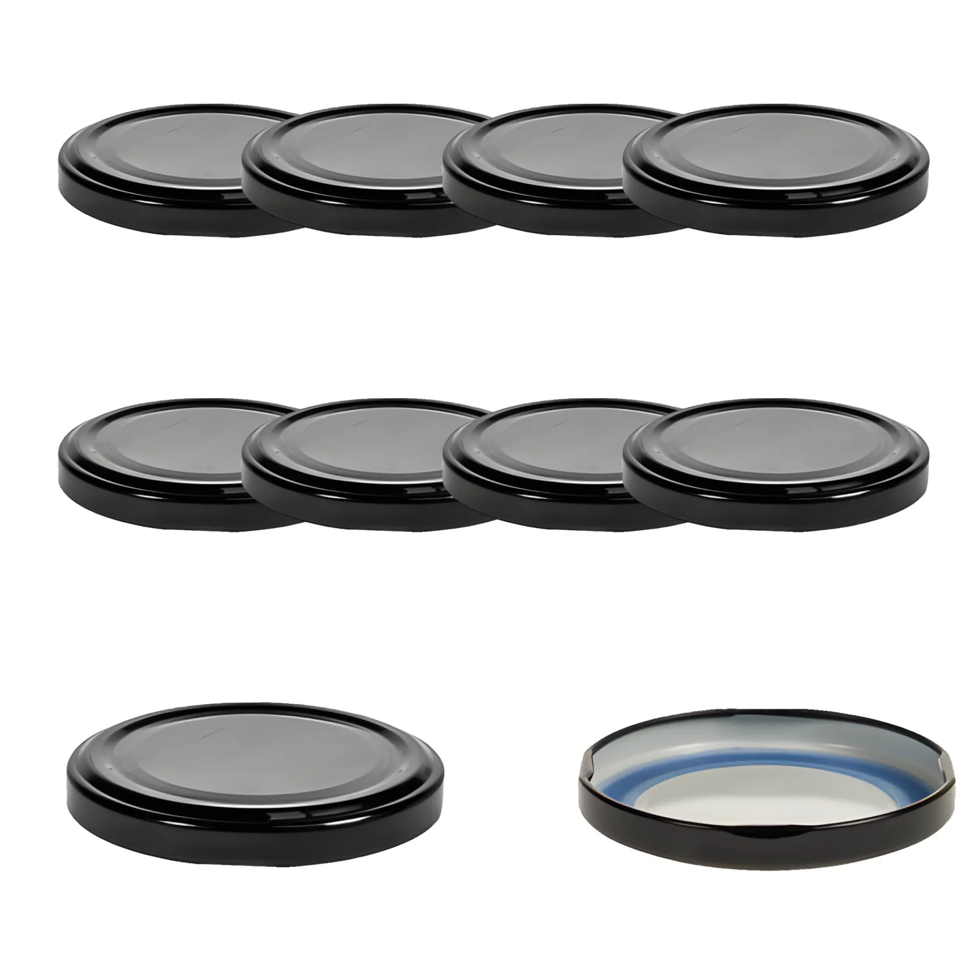 Der schwarze Twist-Off-Deckel im praktischen 10er-Pack passt auf Gläser mit einer TO 66 Mündung (äußerer Öffnungsdurchmesser ohne Gewinde ca. 62 mm). Er ist erhitzbar bis 100 °C (pasteurisierbar) und wegen seiner besonderen Dichtungsmasse speziell geeignet für ölhaltige Füllgüter.