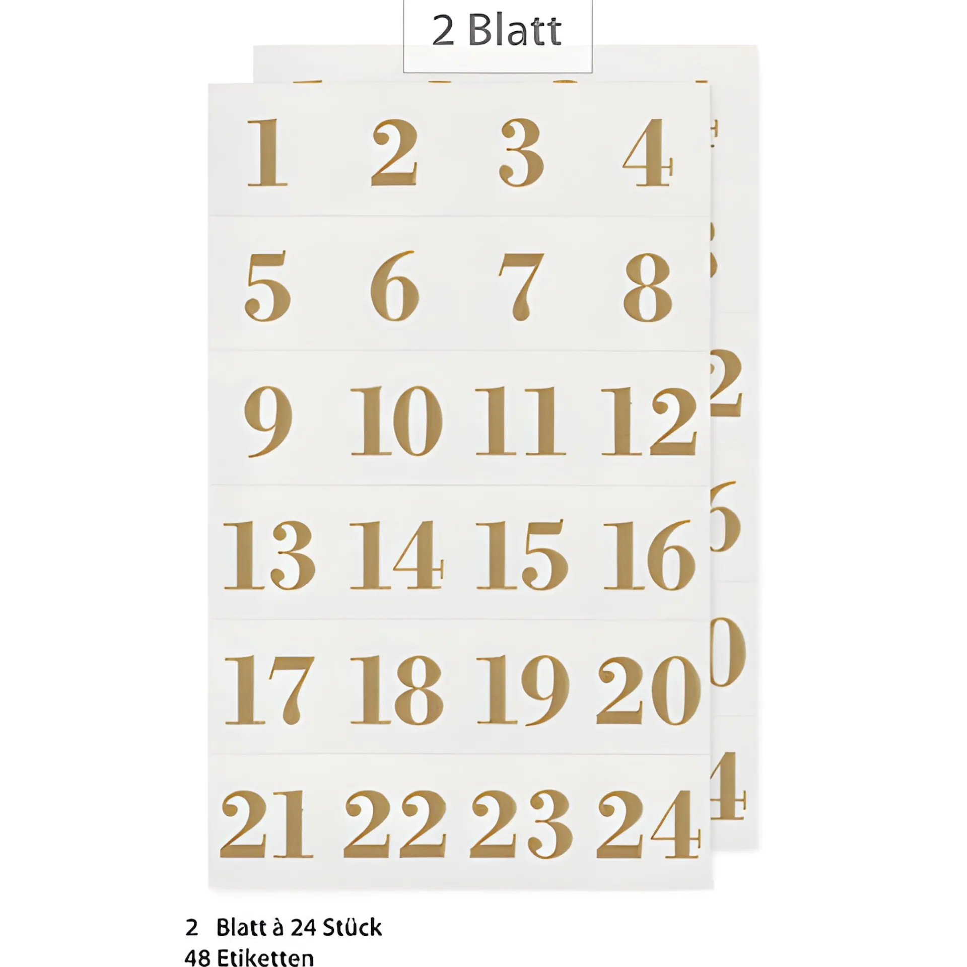 Informationen zum Artikel: Adventskalender-Zahlen ‚Goldene Zahlen‘, 48 Stück