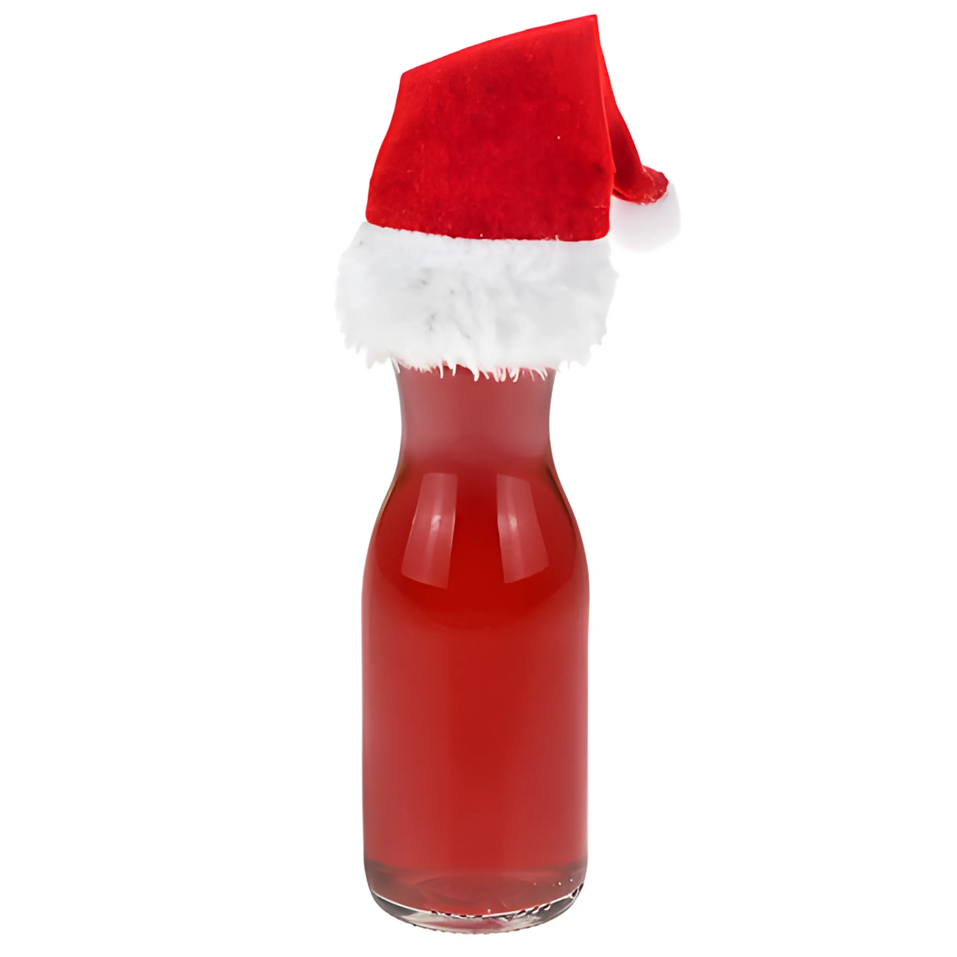 Hübsche Weihnachtsmütze mit Plüsch für Flaschen und schmale Gläser. Das rote Mützchen mit der weißen Bommel und dem flauschigen Bund ist perfekt zum Dekorieren von Likör-, Saft- und Weinflaschen, wo sie einfach über den Verschluss von Flaschen gestülpt werden kann. So bekommt das Selbstgemachte den letzten weihnachtlichen Schliff und ist bereit, verschenkt zu werden.