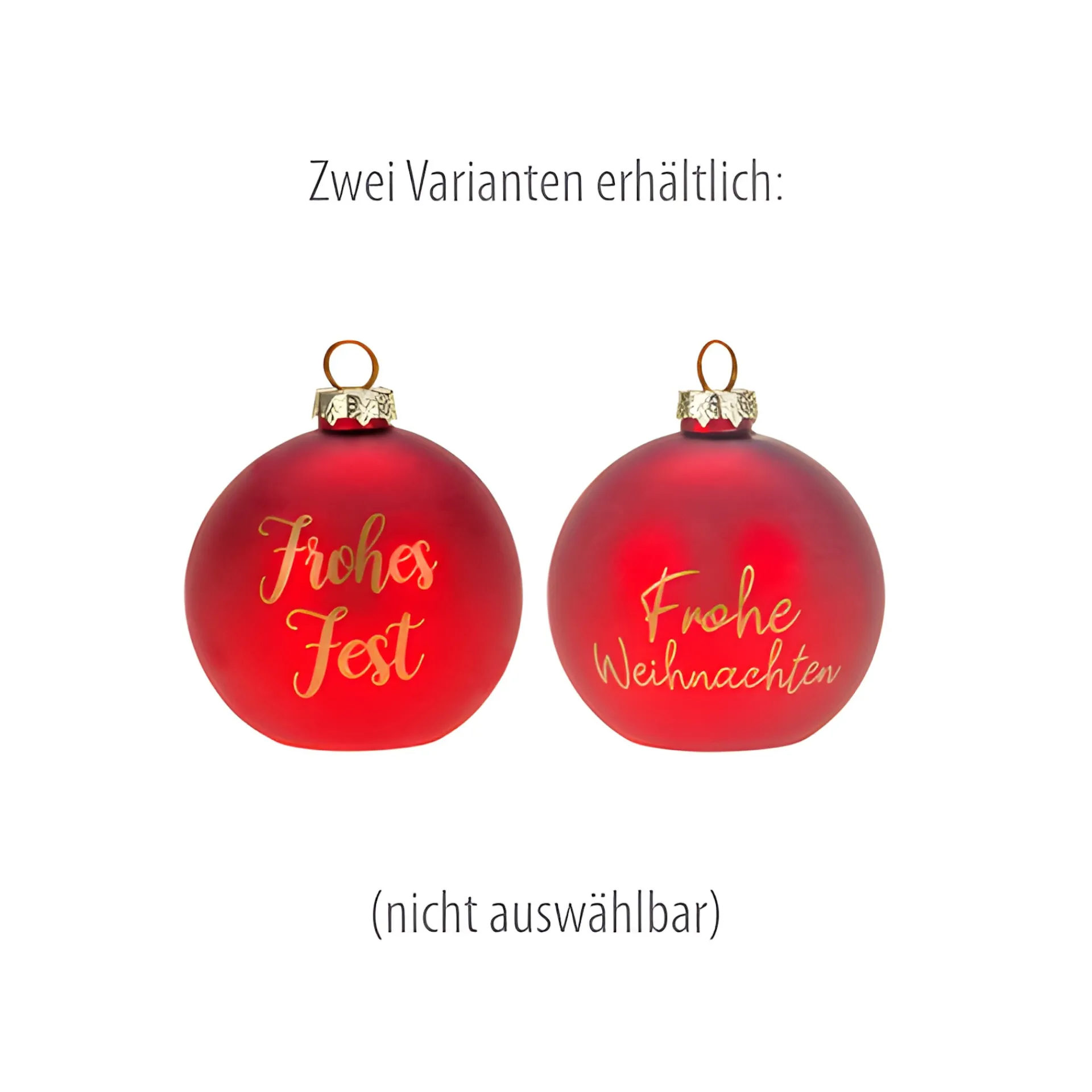 Diese Christbaumkugel mit dem goldenen Schriftzug ‚Frohes Fest‘ oder ‚Frohe Weihnachten‘ (nicht aussuchbar) kommt nicht an den Baum, sondern findet ihren Platz auf dem Tisch, in der Vitrine oder auf der Kommode. Passend zur Weihnachtszeit vermittelt die matt-rote Weihnachtskugel aus Glas eine festliche Atmosphäre, ist eine ungewöhnliche Geschenkidee und arrangiert gleichzeitig Ihre Fotos oder Karten neu.