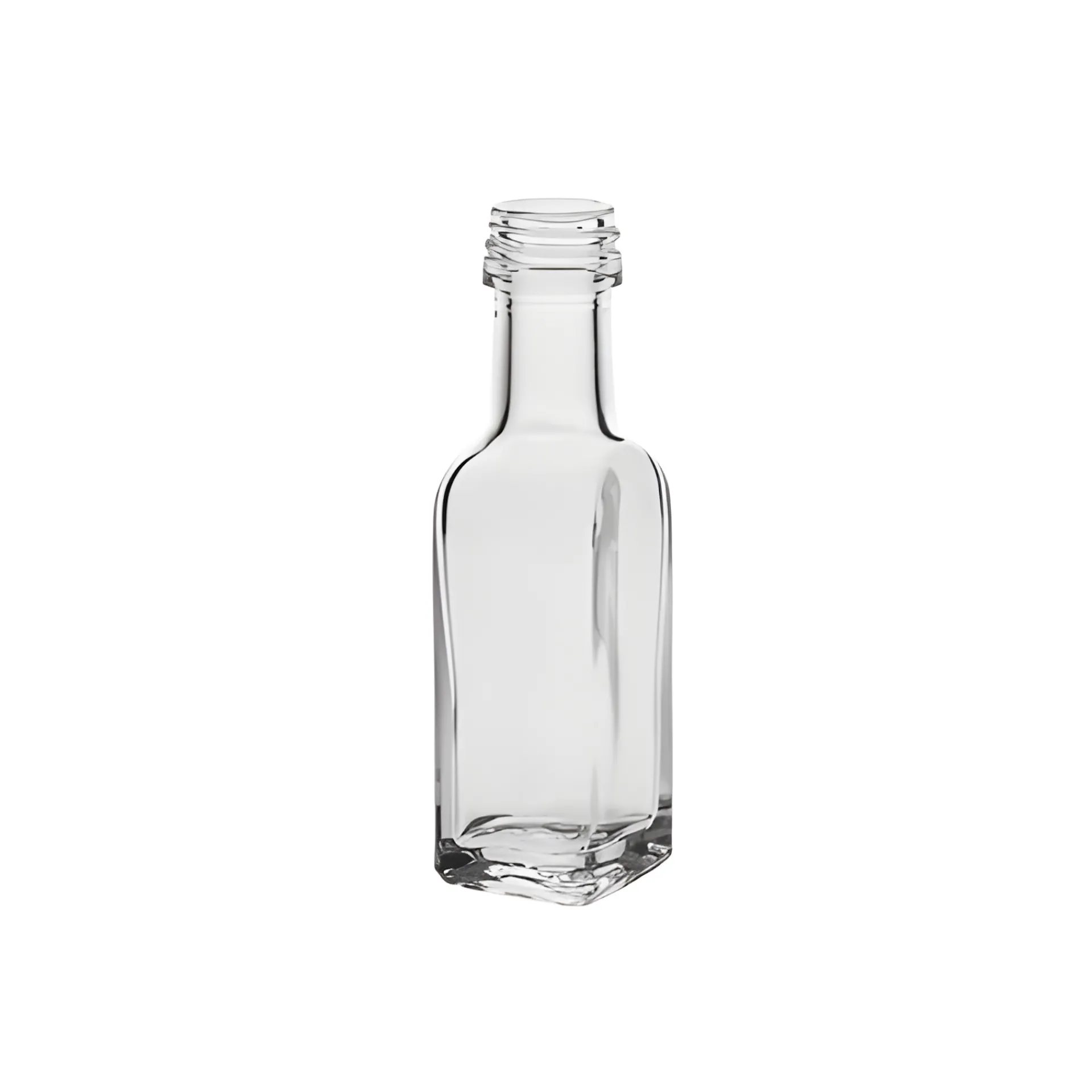 Die kleine Ölflasche der Marasca-Serie hat eine markante quadratische Form und einen kurzen Hals. Mit einer Füllmenge von nur 20 ml ist die Miniflasche ideal für kleine Kostproben. Befüllt mit Likör, Sirup, aromatisiertem Öl oder Kräuteressig ist sie ein schönes Mitbringsel und Giveaway, über das sich jeder freut. Auch als originelle Deko-Flasche kann sie wunderbar verwendet werden.