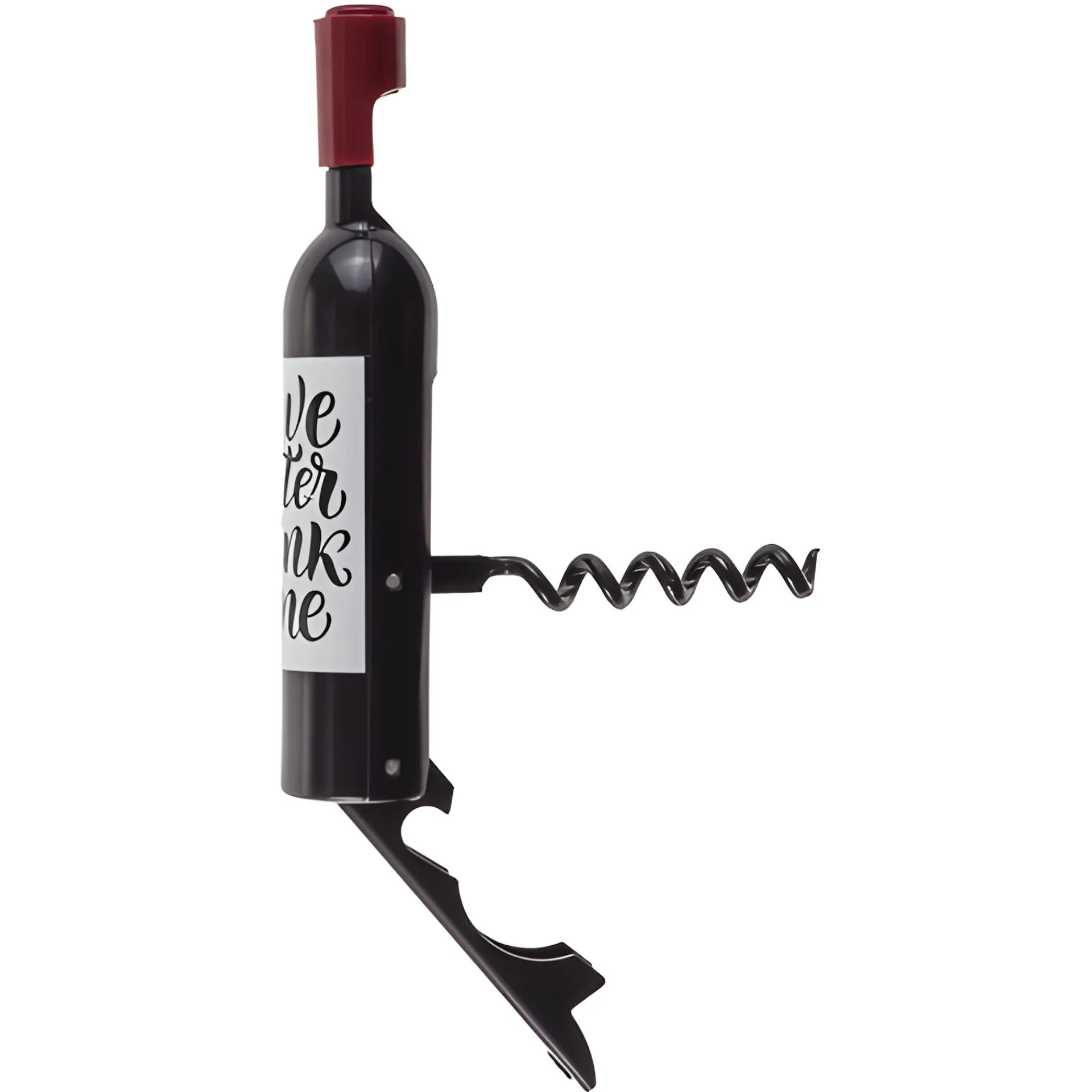 Der originelle Stil des Flaschenöffners wird durch einen aufgedruckten Spruch unterstrichen. Diesen gibt es in den Varianten: ‚Save Water Drink Wine‘, ‚Zu Vino sag ich nie no!‘, ‚Komm mach den Wein auf. Hält doch sonst keiner aus.‘ und ‚Hol鈥üssen über Gefühle reden‘.