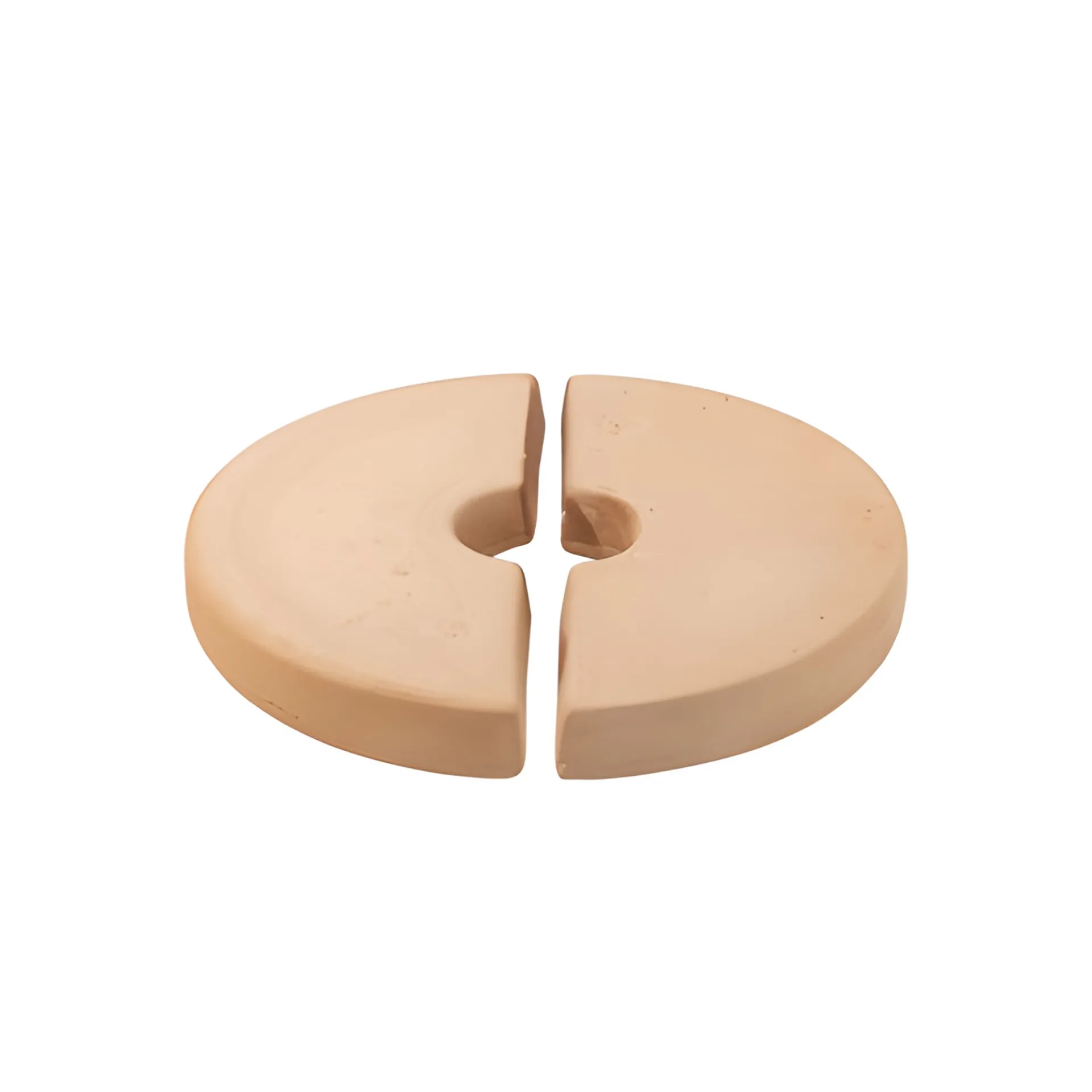Fermentiergewichte aus Keramik, passend für den 10 Liter-Gärtopf. Der runde Beschwerungsstein hat einen Durchmesser von ca. 18 cm und ist zweigeteilt, wodurch beim Fermentieren eine größere Fläche als die Öffnungsmündung abgedeckt werden kann. So wird das Fermentiergut wie mit einem Pressello stets unter der Sud-Oberfläche gehalten, wodurch eine Schimmelbildung verhindert wird, die durch Sauerstoff und Fremdstoffe entstehen kann. Wenn alles dicht verschlossen und mit der Salzlake bedeckt ist, können die Milchsäurebakterien arbeiten und die gesunde Gärung beginnt.