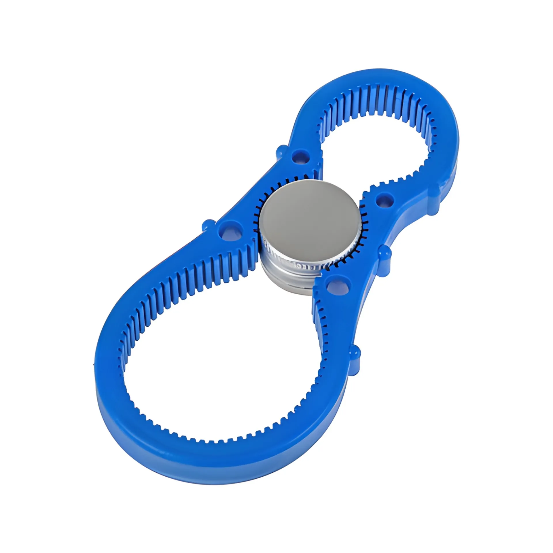 Praktischer Deckelöffner für unterschiedliche Verschluss-Größen. Der handliche Glas- und Flaschenöffner macht das Aufmachen festsitzender Drehverschlüsse zum Kinderspiel. Einfach mit dem entsprechenden Auslass um den Deckel gelegt und schon lassen sich Gläser und Flaschen dank der Hebelwirkung ohne Kraftaufwand öffnen. Das stabile, aber dennoch flexible Kunststoffmaterial mit der geriffelten Innenseite passt sich dem Deckel perfekt an, ohne dass er beschädigt wird.