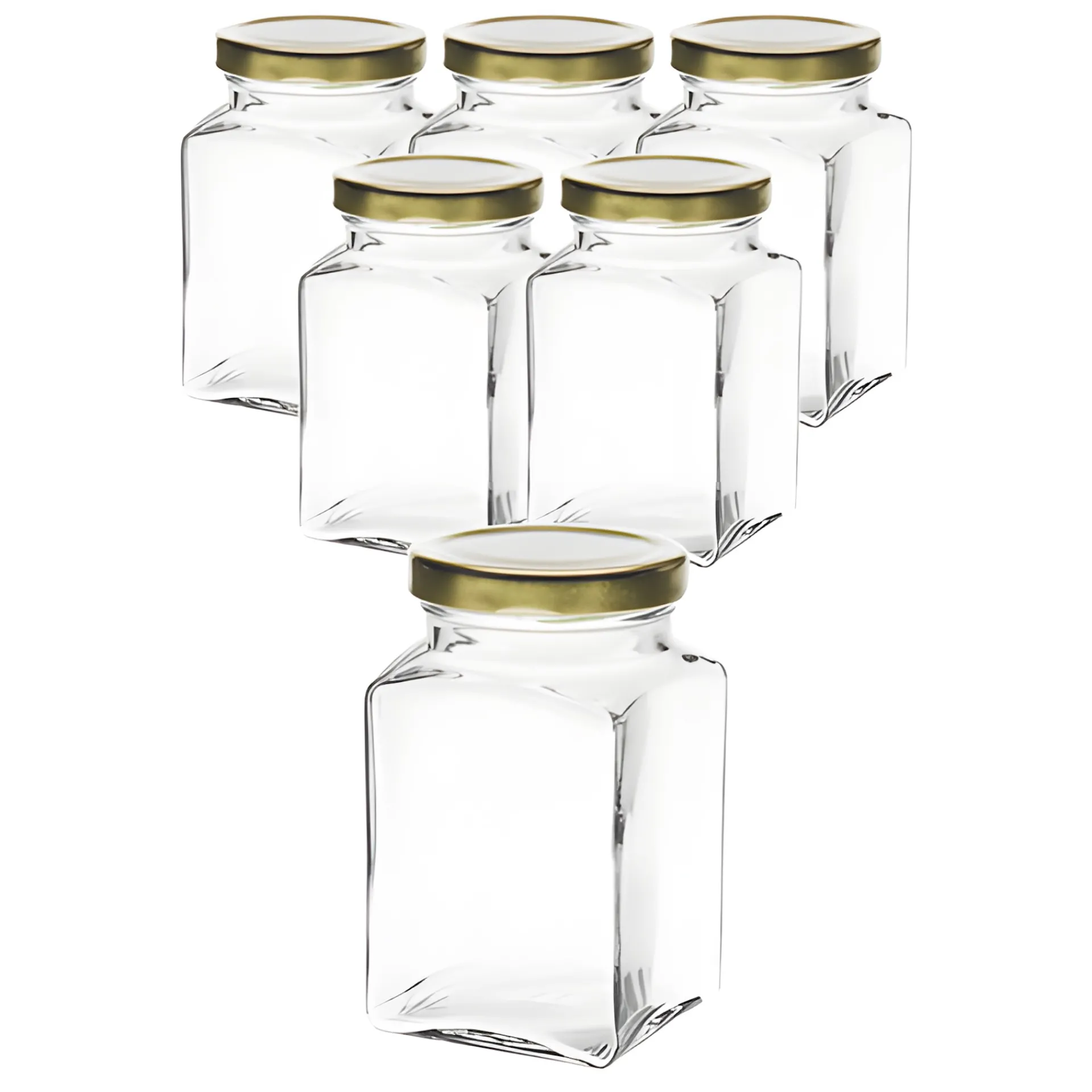 Informationen zum Artikel: 6er Set Quadratglas 260 ml mit Deckel gold