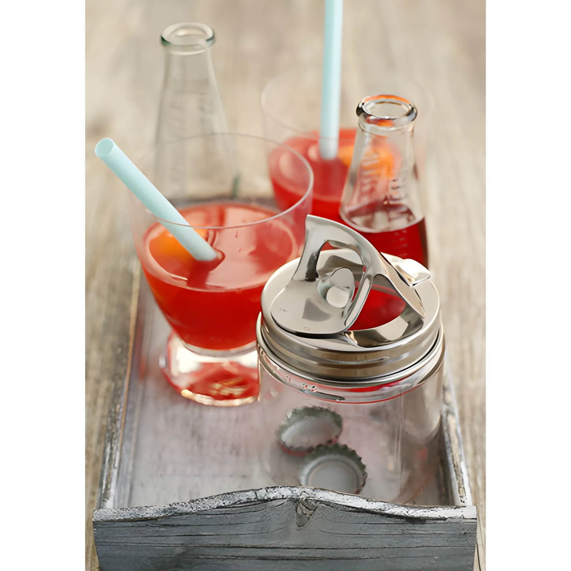 Verwandeln Sie Ihr Glas mit dem Öffnerverschluss in einen multifunktionalen Behälter, der sich so in einen perfekten Flaschenöffner und stilvollen Kronkorken-Sammler verwandelt. Denn neben dem Lösen vom Kronkorken Ihrer Glasflasche hat der Verschluss auch einen breiten Schlitz, durch den die kleinen Deckel einfach ins Glas geworfen und bis zur Entsorgung aufbewahrt werden können. Eine nicht nur ansehnliche, sondern auch saubere und hygienische Lösung auf dem Tisch.