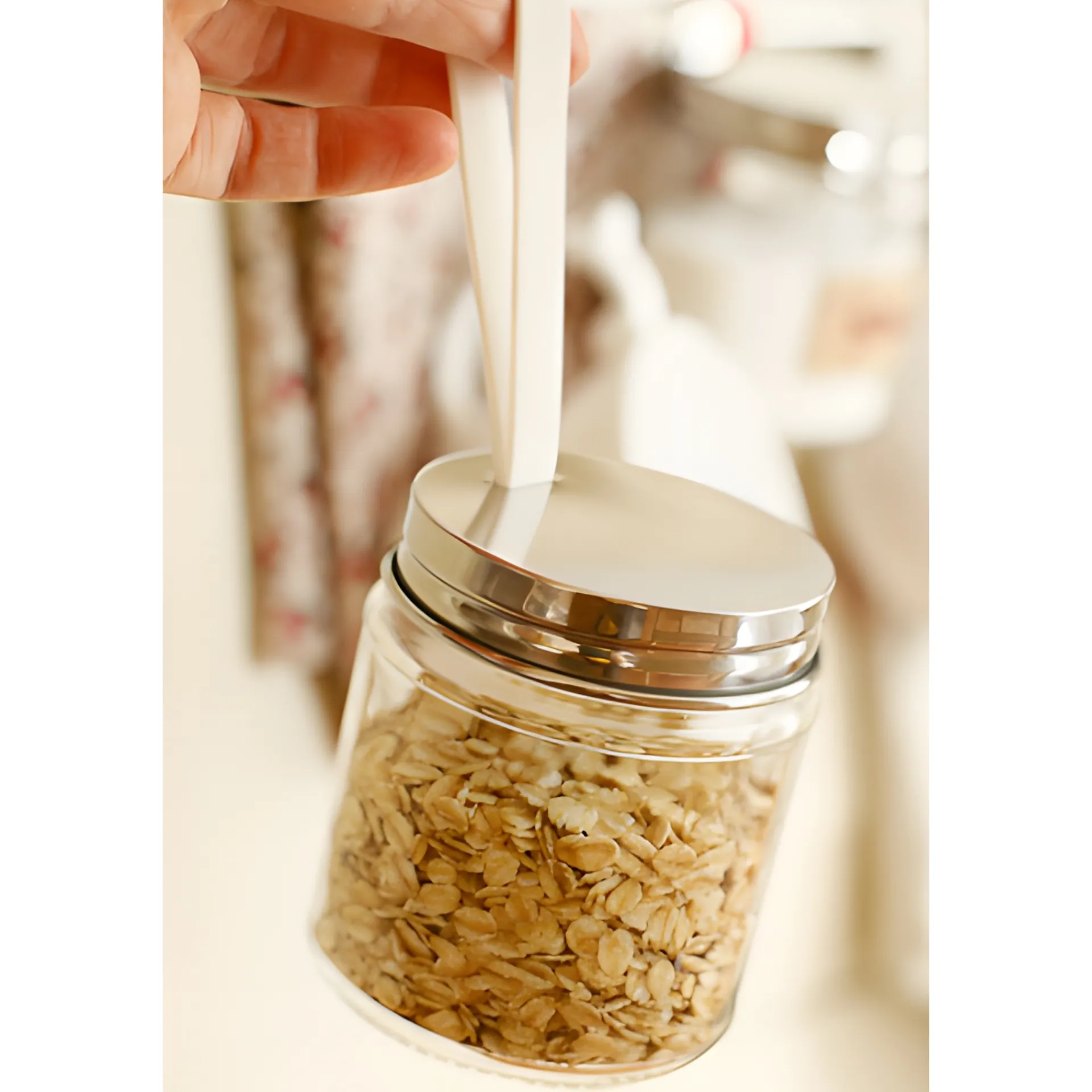Der Küchenhelfer eignet sich besonders zum Verschließen von Gläsern befüllt mit Gewürzen, Zucker, Nüssen oder anderen trockenen Lebensmitteln. Aber auch bei der Büro-Organisation ist der Verschluss aus Edelstahl besonders nützlich. So können Gläser mit Heftklammern, Reißnägeln oder Büroklammern geordnet verstaut werden und sind jederzeit schnell zur Hand.