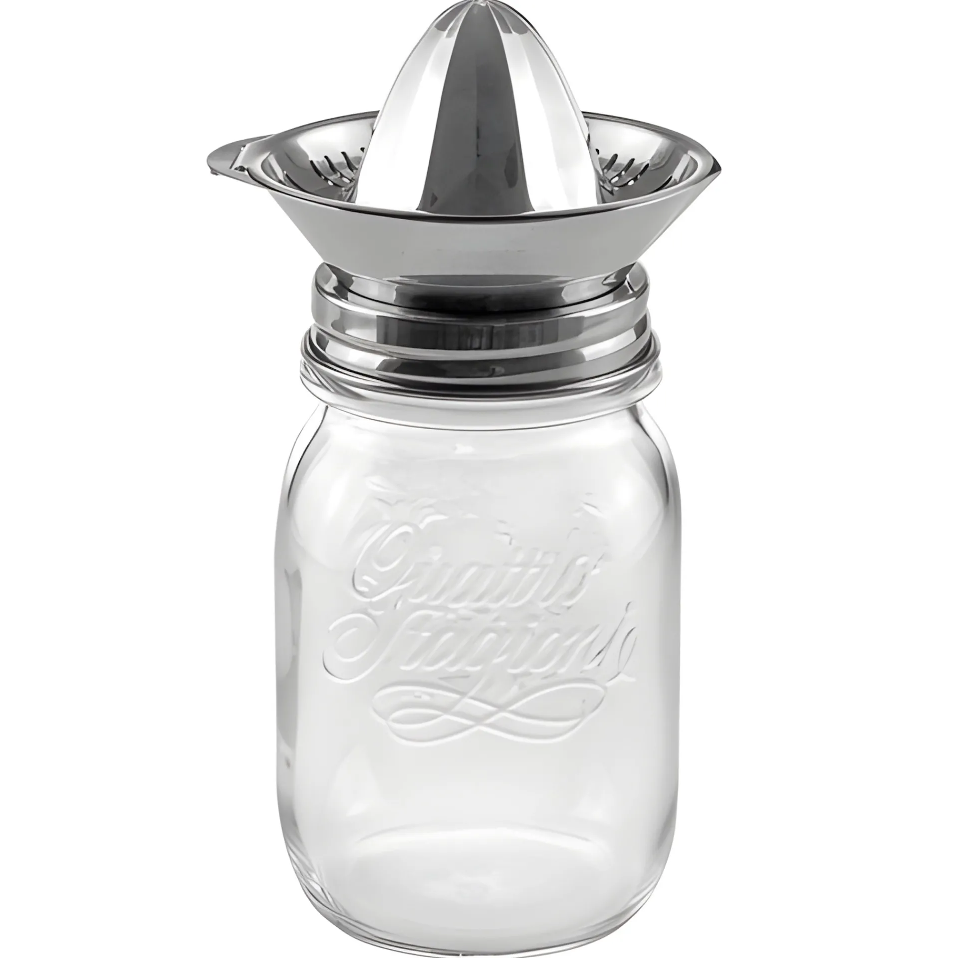 Frisch gepresster Orangensaft direkt ins Glas mit einer stilechten Saftpresse. Mit diesem Küchenhelfer können Sie den Saft einer Orange, Pomelo oder Grapefruit ganz einfach auspressen, den Schraubdeckel abnehmen und den Saft direkt aus dem Glas trinken.