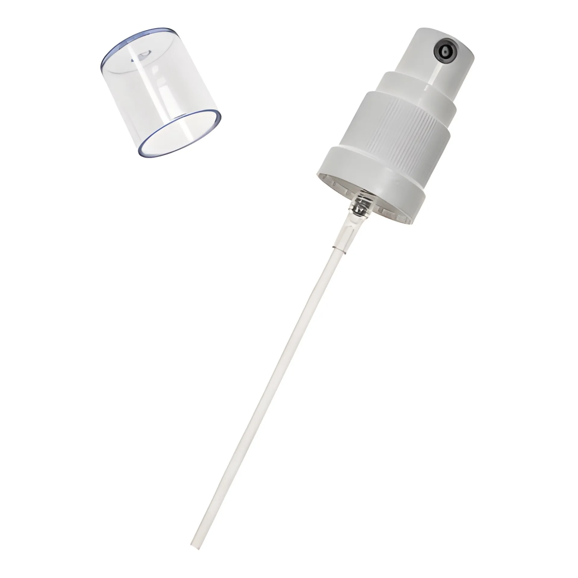 Der Sprühaufsatz mit 0,14 ml Hub und Kunststoffdeckel passt auf die Tropfflasche 50 ml. Durch leichten Druck auf die Sprühpumpe lassen sich wohltuende Essenzen, Desinfektionsmittel oder Raumduft sparsam verteilen. Auch Parfüm oder Körperöl können mit dem Zerstäuber angenehm dosiert auf die Haut gesprüht werden.