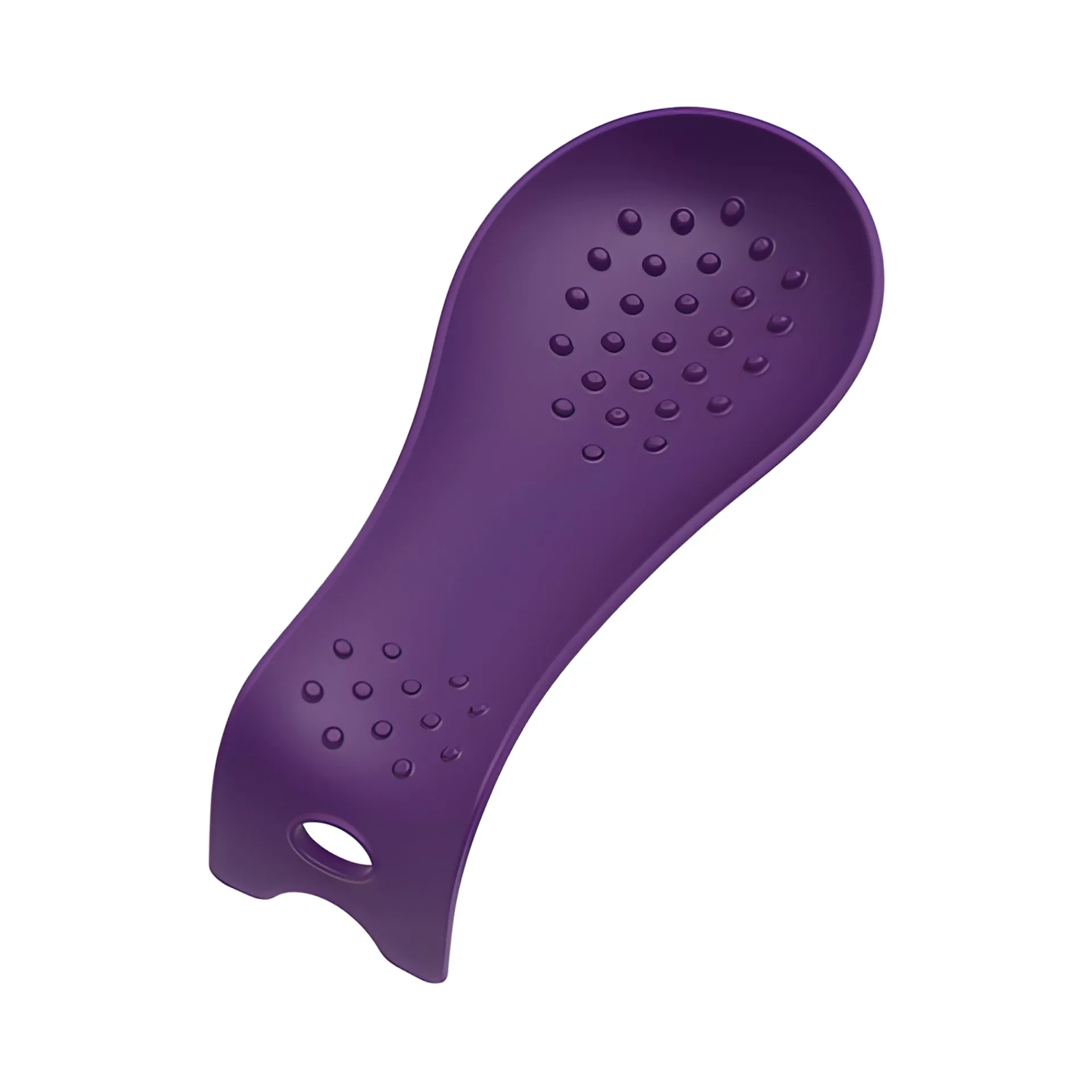 Die violette Löffelablage von Kochblume ist die perfekte Ergänzung für Ihre Küche. Sie hält die Arbeitsfläche und den Herd bei der Zubereitung von Speisen sauber und sorgt für Ordnung. Schmutzige oder fettige Kochutensilien können ganz bequem neben dem Topf auf die Silikonablage gelegt werden. Der erhöhte Rand verhindert, dass Öl oder Soßen daneben kleckern.