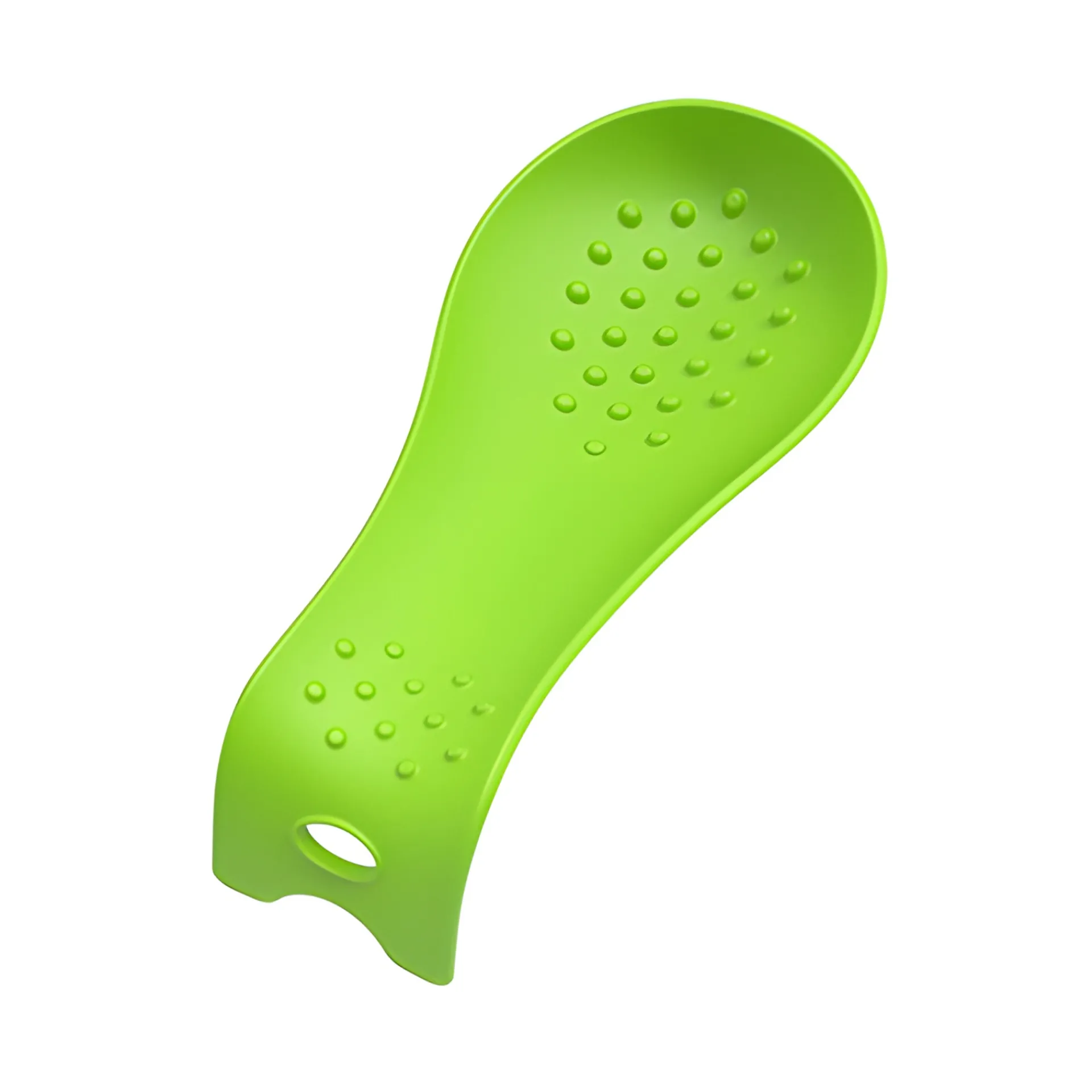 Die limettengrüne Löffelablage von Kochblume ist die perfekte Ergänzung für Ihre Küche. Sie hält die Arbeitsfläche und den Herd bei der Zubereitung von Speisen sauber und sorgt für Ordnung. Schmutzige oder fettige Kochutensilien können ganz bequem neben dem Topf auf die Silikonablage gelegt werden. Der erhöhte Rand verhindert, dass Öl oder Soßen daneben kleckern.
