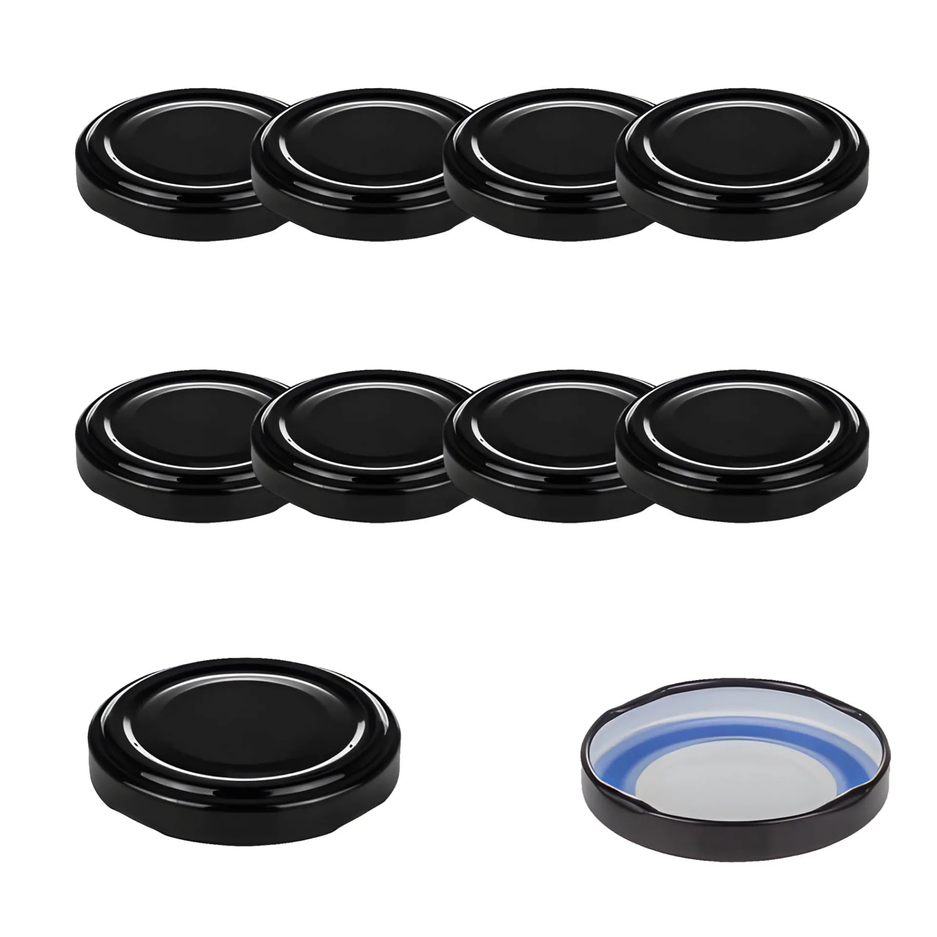 Der schwarze Twist-Off-Verschluss im praktischen 10er-Pack passt auf Gläser und Flaschen mit einer TO 53 Mündung (äußerer Öffnungsdurchmesser ohne Gewinde ca. 48,9 mm). Er ist erhitzbar bis 100 °C (pasteurisierbar) und wegen seiner besonderen Dichtungsmasse speziell geeignet für ölhaltige Füllgüter.