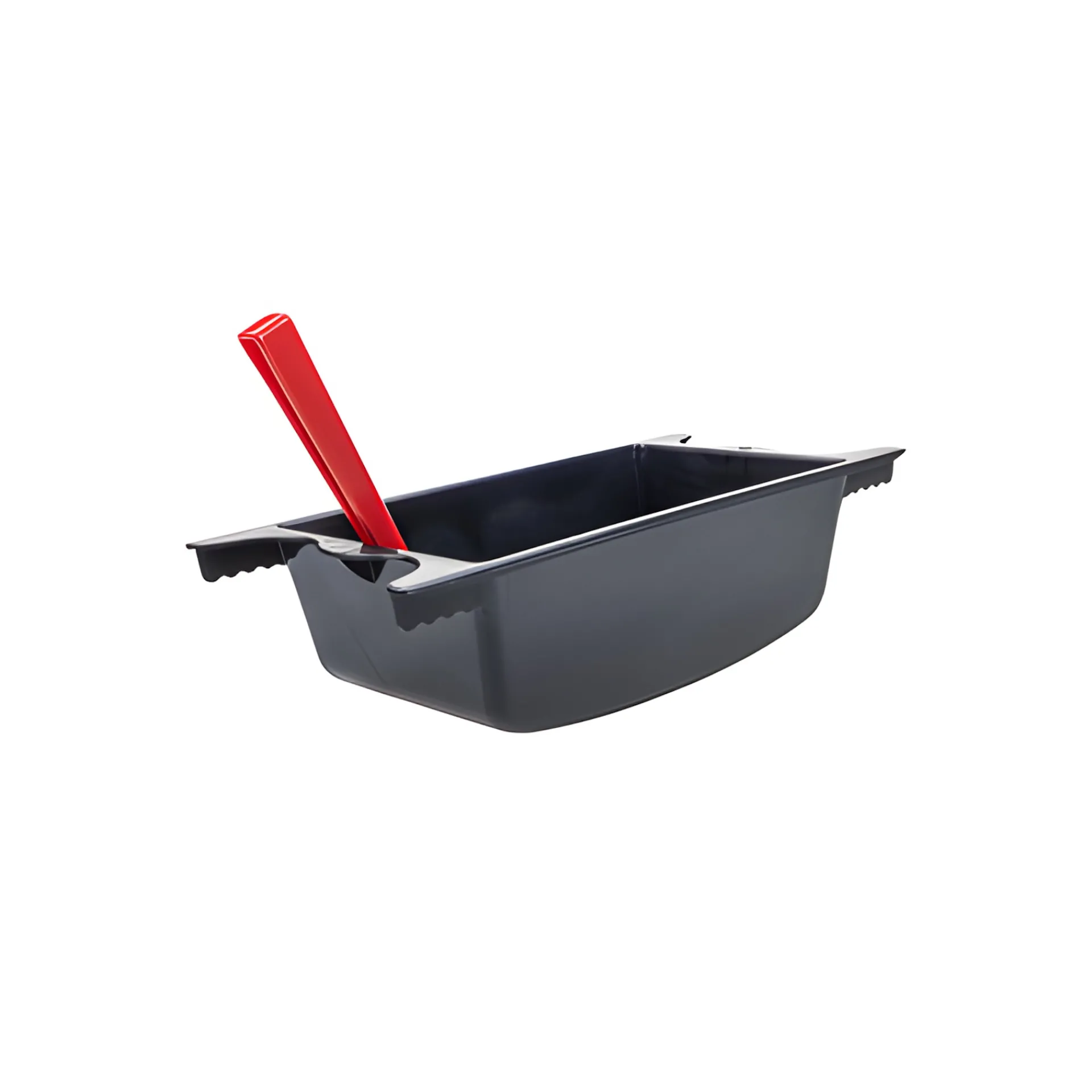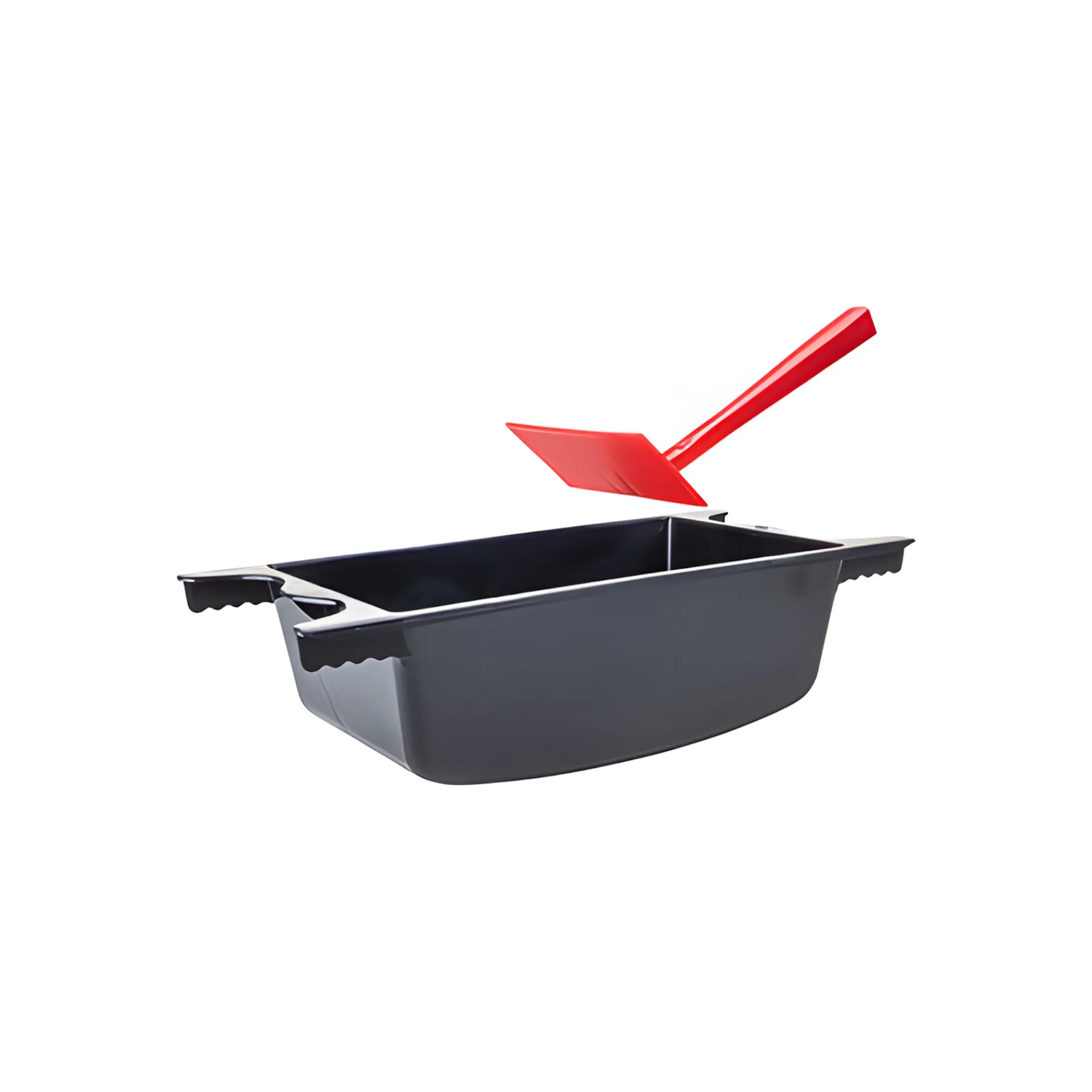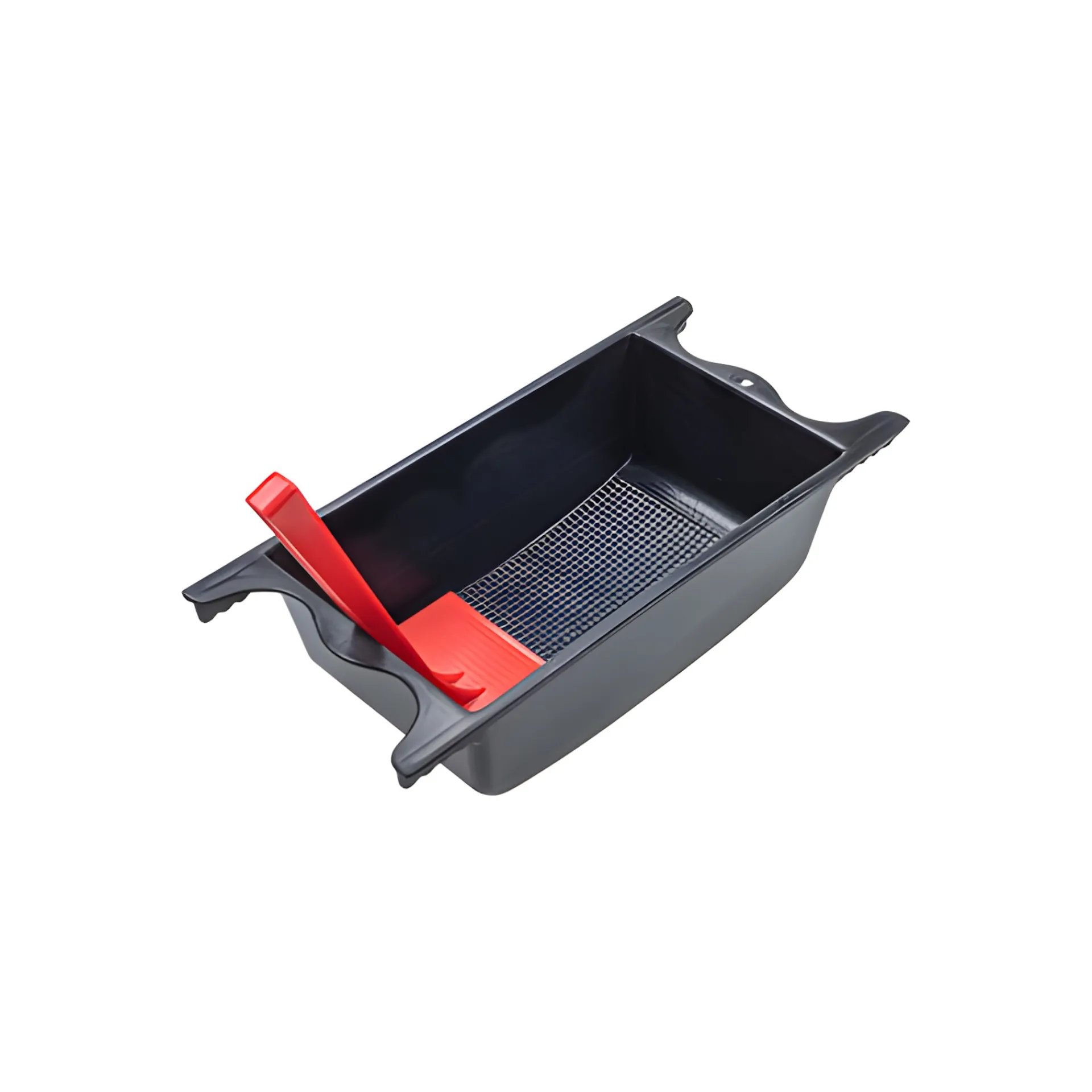 Extra flaches Passiersieb aus Kunststoff mit einem Siebquetscher zum Ausdrücken von Beeren und Ähnlichem.