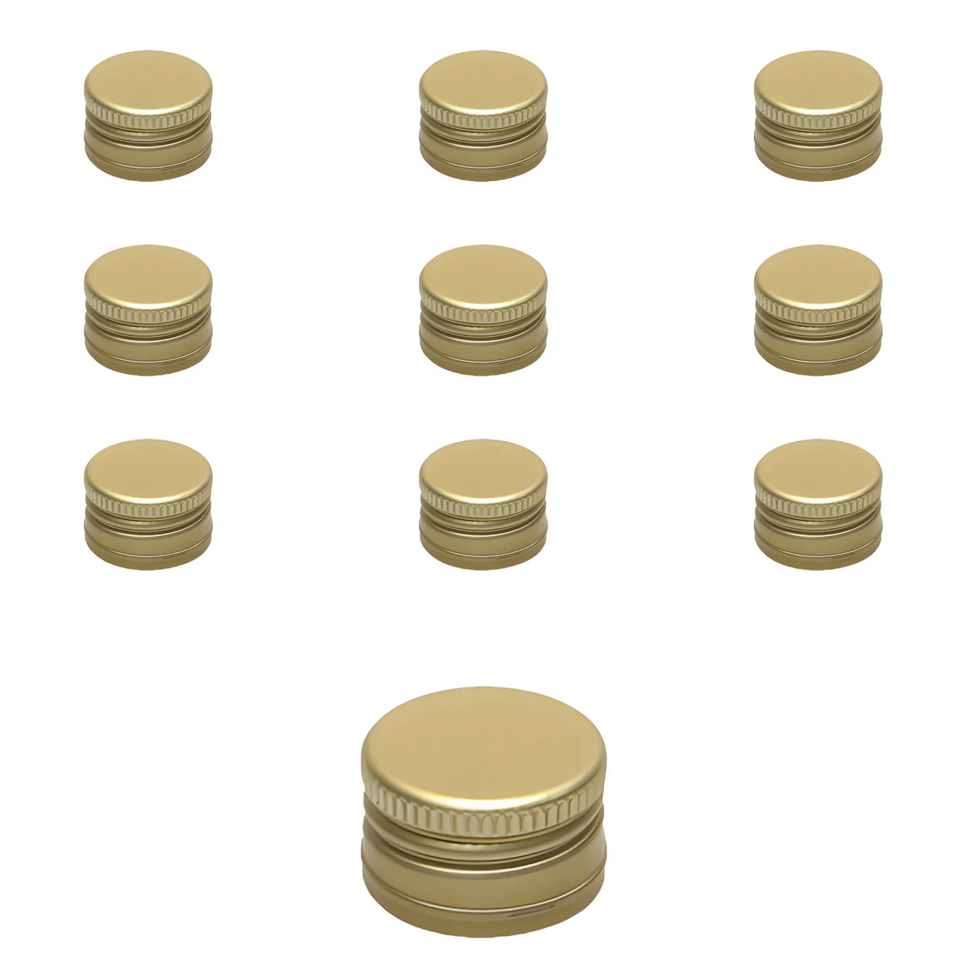 Der goldfarbene Schraubverschluss aus Aluminium im praktischen 10er-Pack passt auf alle Schraubflaschen mit einer PP 22-Mündung, z. B. auf die kleine Geradhalsflasche 100 ml.