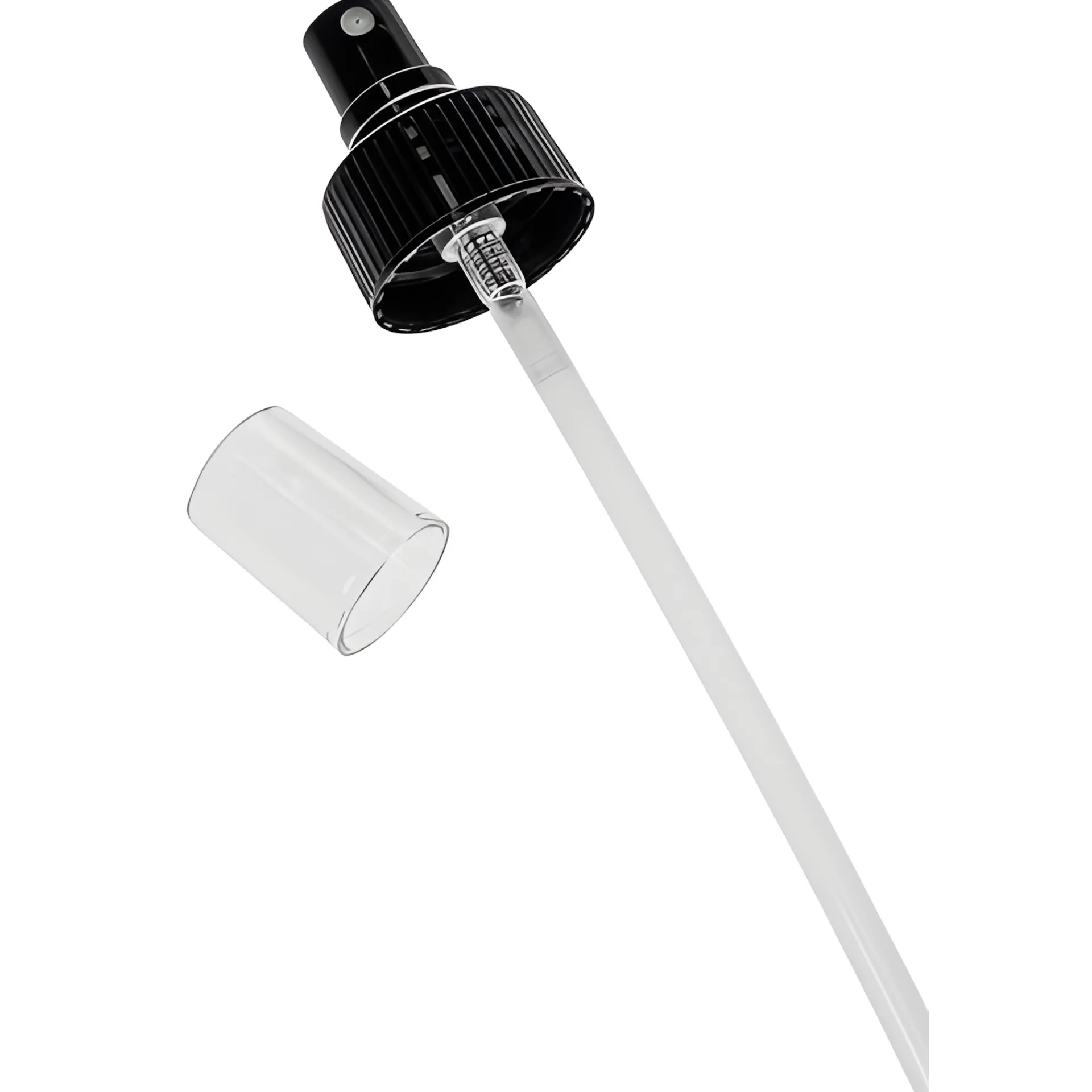 Der Sprühverschluss mit Sprühpumpe und Kunststoffdeckel passt auf alle Flaschen mit einer maximalen Höhe von 22 cm und einer PP-31,5-Mündung wie z. B. einige Flaschen der Dorica- oder Marasca-Serien. Durch leichten Druck auf die Sprühpumpe lassen sich die Flüssigkeiten sparsam verteilen. Zum Beispiel können Öl und Essig mit dem Zerstäuber gut dosiert auf den Salat gesprüht werden.