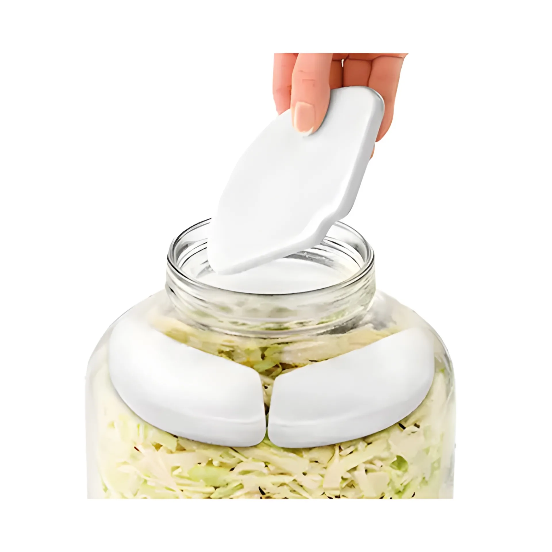 Die Gewichte sind aus erstklassiger Keramik mit beständiger Glasur hergestellt und werden zum Beschweren bei der Fermentation in Gärgefäßen und Gläsern als Fermentierstein genutzt. Die Fermentiergewichte drücken wie ein Pressello den Kohl oder anderes Gemüse in die Flüssigkeit, sodass die Schimmelbildung verhindert wird und somit eine saubere Fermentation unter Ausschluss von Sauerstoff gegeben ist. Zum einfachen Reinlegen und Entnehmen aus dem Glas besteht das Fermentationsgewicht aus 3 gleichen Teilen, die zusammengelegt einen Durchmesser von ca. 153 mm ergeben.