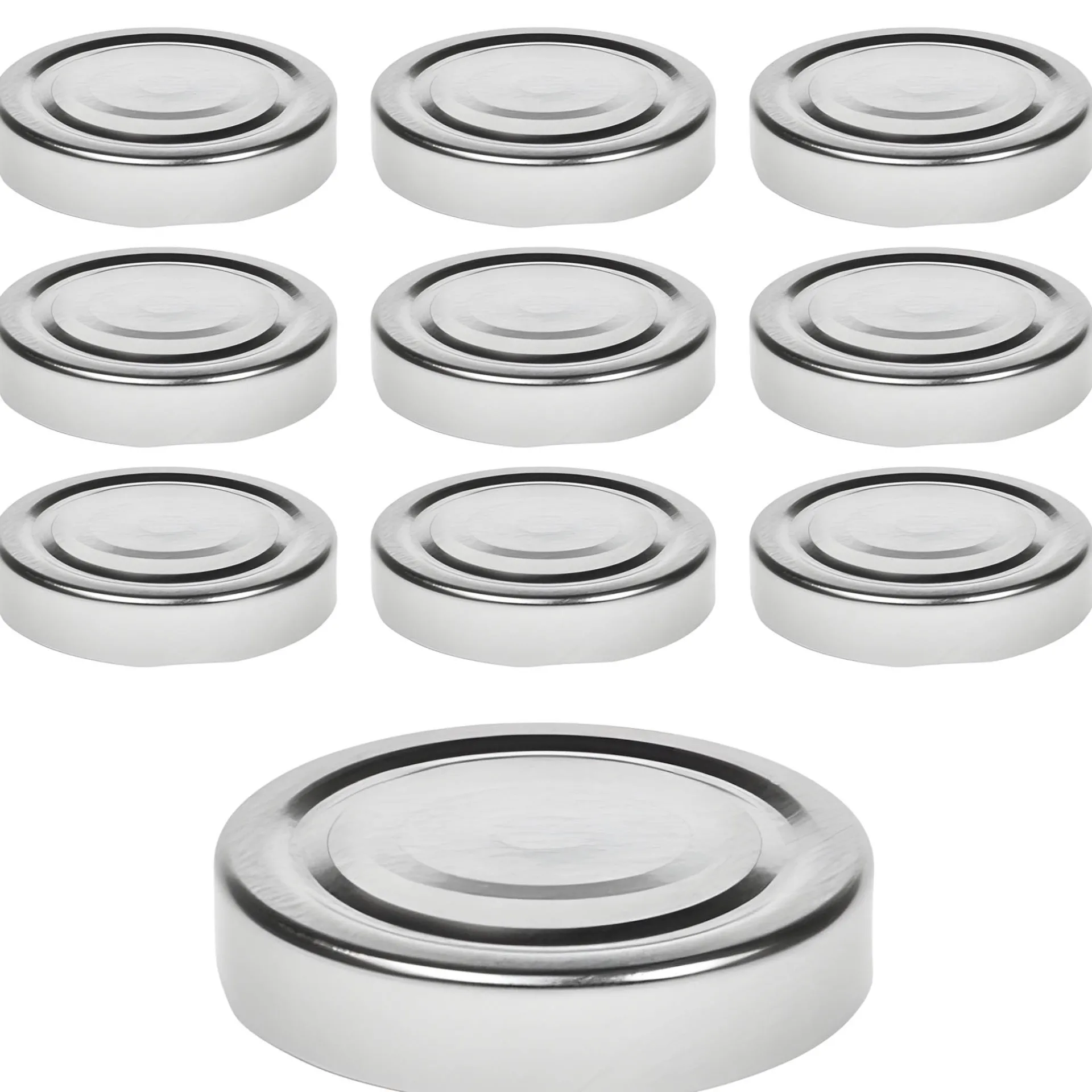 Hochwertiger Twist-Off-Verschluss Deep in Silber, passend für Gläser mit einer TO 66 Deep-Mündung (äußerer Öffnungsdurchmesser des Glases ohne Gewinde ca. 62 mm), im praktischen 10er-Pack.