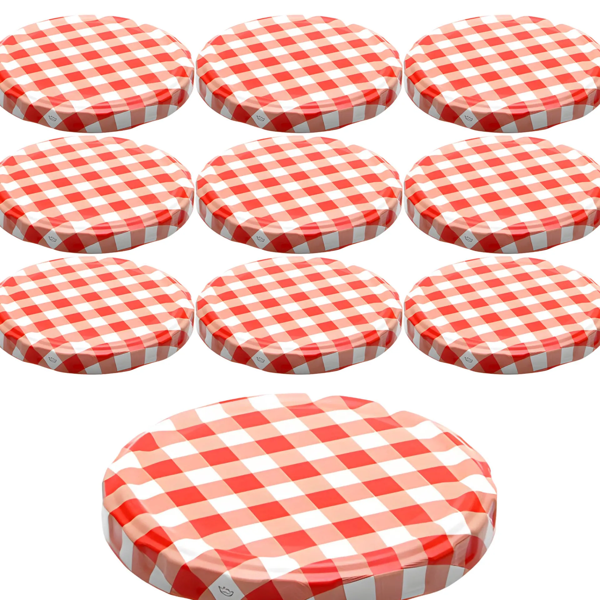 Der rot-weiß karierte Twist-Off-Verschluss im praktischen 10er-Pack passt auf Gläser mit einer TO 82 Mündung (äußerer Öffnungsdurchmesser ohne Gewinde ca. 77,4 mm). Der Twist-Off-Deckel ist erhitzbar bis 120 °C (sterilisierbar) und kann ab einer Füllmenge von 315 ml für ölhaltige Füllgüter eingesetzt werden.