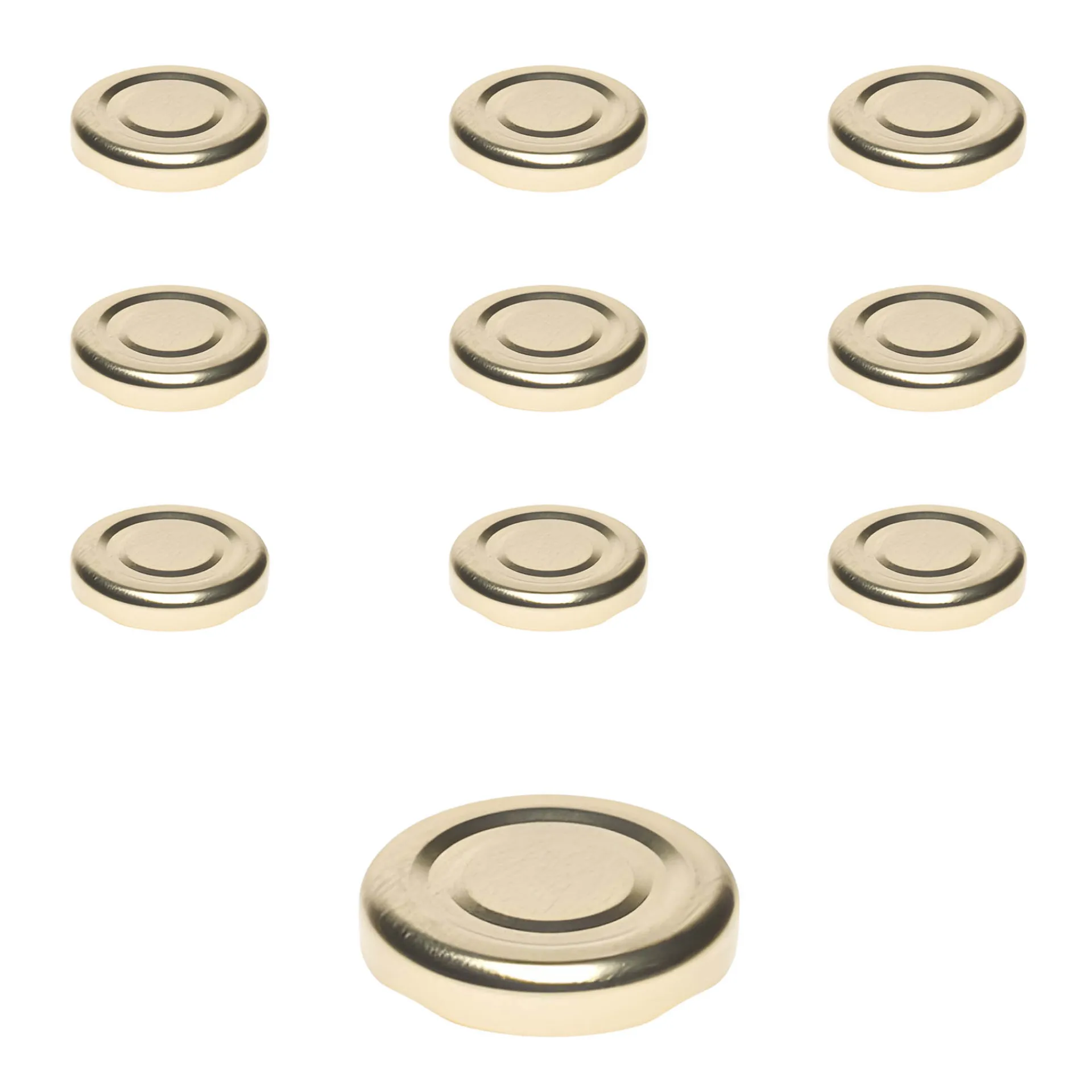 Goldfarbener Twist-Off-Verschluss, passend für Gläser und Flaschen mit TO 43 Mündung (äußerer Öffnungsdurchmesser des Glases ohne Gewinde ca. 37,9 mm), im praktischen 10er-Pack.