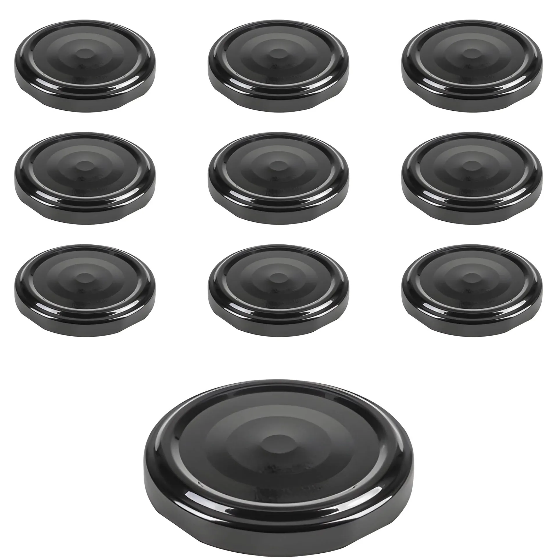 Hochwertiger Twist-Off-Verschluss in Schwarz mit Button, passend für Gläser und Flaschen mit TO 58 Mündung (äußerer Öffnungsdurchmesser des Glases ohne Gewinde ca. 52,8 mm), im praktischen 10er-Pack.