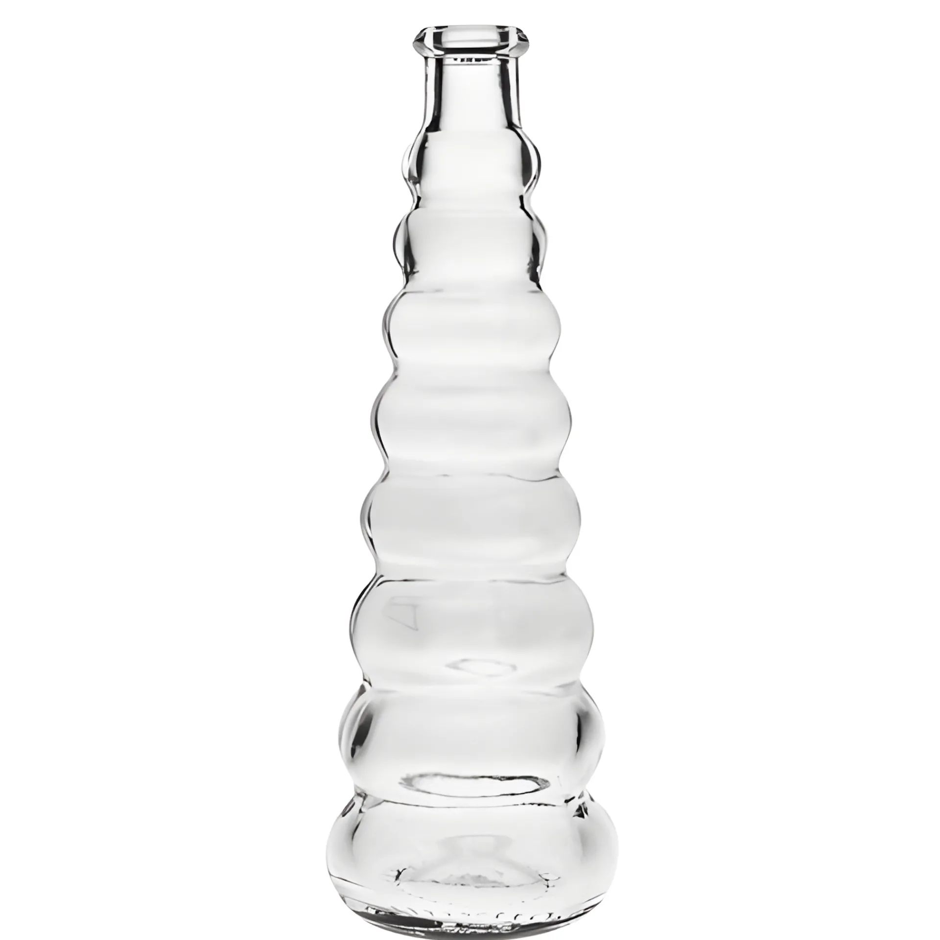 In dieser kleinen Korkenflasche werden edle Liköre, Obstbrände und feine Essenzen besonders dekorativ verpackt. Der geschwungene, treppenförmige Aufbau verleiht der Glasflasche einen einzigartigen Look mit großem Wiedererkennungswert.