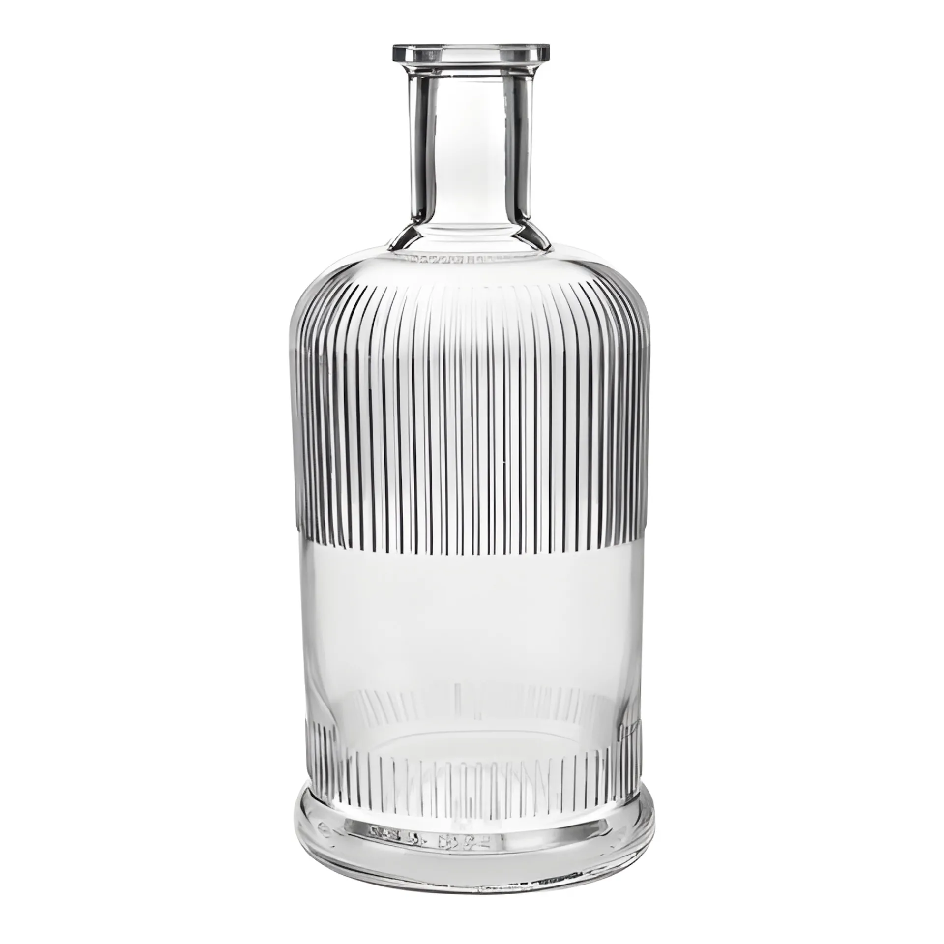 Damit diese schöne Relief-Flasche auch dekorativ und ausführlich beschriftet werden kann, hat der Flaschenkörper zwischen den Linien eine glatte Fläche, auf der ganz einfach Etiketten und Banderolen angebracht werden können. Die Etikettierfläche hat eine Höhe von maximal 50 mm und einem Durchmesser von etwa 87 mm.