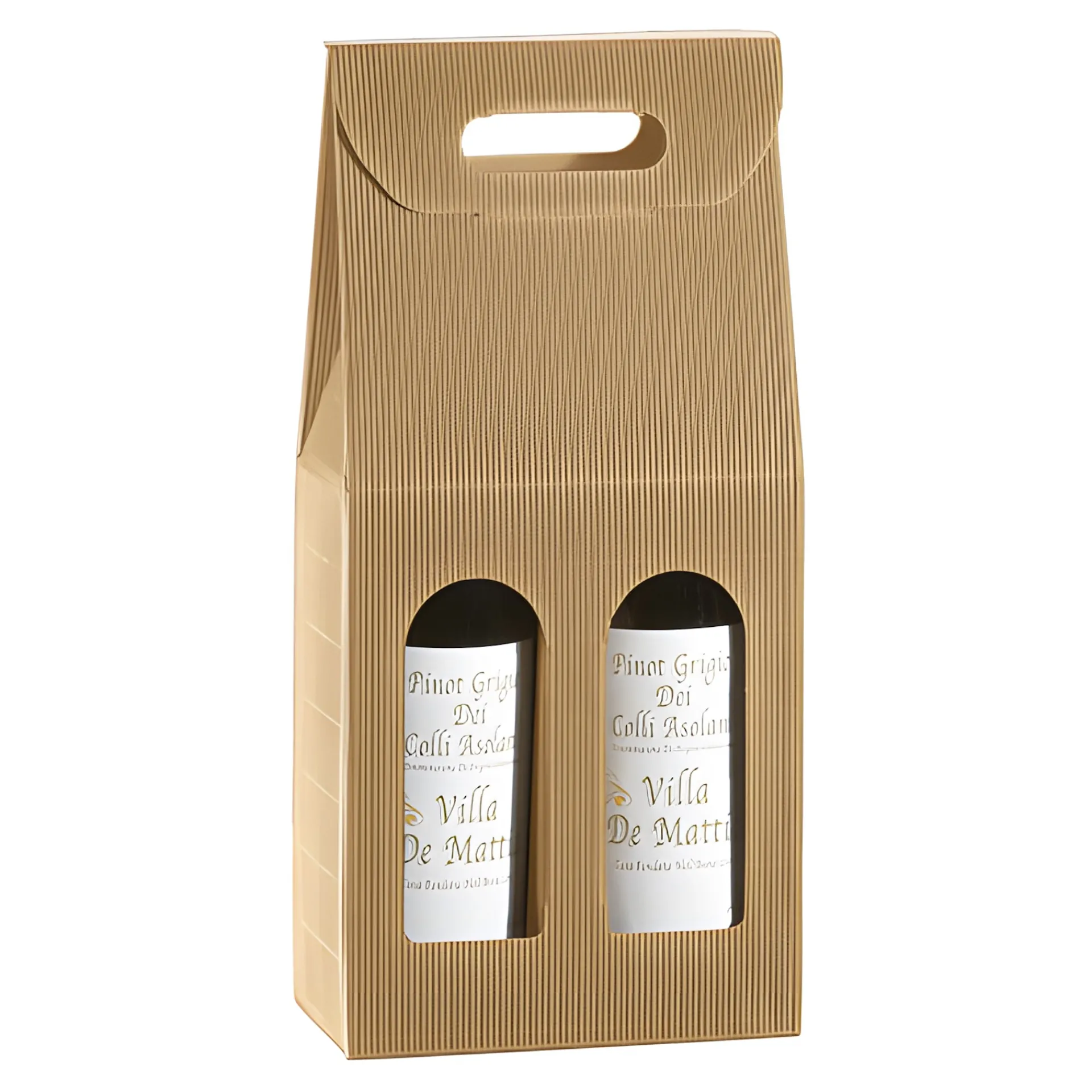 Hochwertige Wein- und Sektflaschenverpackung mit Tragegriff, passend für 2 Flaschen mit einem Durchmesser von 75 bis 85 mm und einer Höhe von maximal 300 mm, z. B. Likörflasche 700 ml.