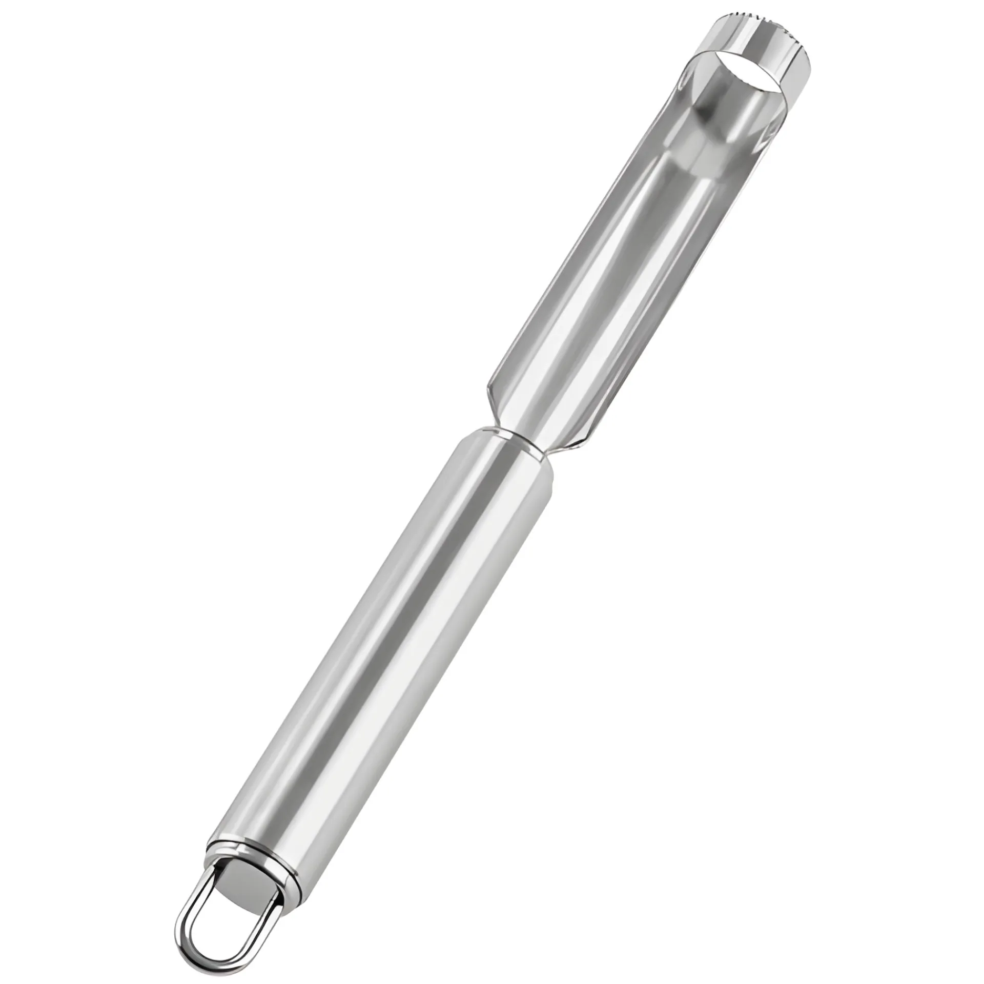 Mit diesem hochwertigen Fruchtentkerner aus rostfreiem Edelstahl gelingt das Entfernen des Kerngehäuses von Äpfeln und anderen Früchten schnell, sauber und mühelos. Einfach den Apfelausstecher mit seiner scharfen Zackenklinge auf das Kerngehäuse setzen und ohne Kraftaufwand hinunterdrücken. Schon ist der Apfel entkernt und kann ohne störende Kerne und Gehäuse verzehrt werden. Superpraktisch für die Zubereitung von Bratäpfeln.
