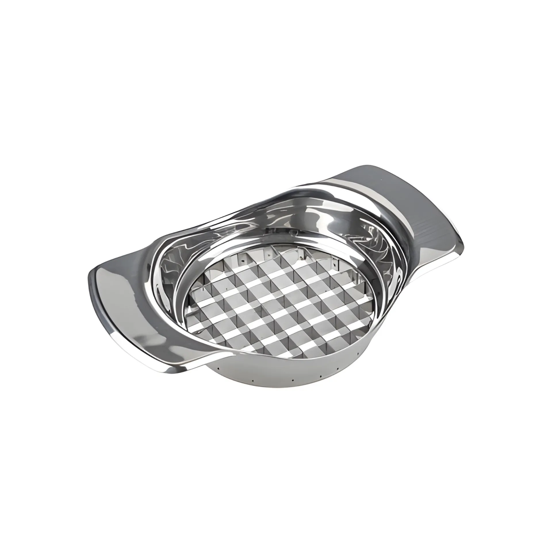 Mit diesem praktischen Gemüseteiler können Sie mühelos und schnell gleichmäßige Gemüsestifte schneiden. Er ist aus rostfreiem, robustem Edelstahl und gleicht von seiner runden Form her einem klassischen Apfelschneider. Statt der Spalten-Aufteilung hat der Gemüseschneider ein Teilungsgitter, welches das Gemüse in Stifte schneidet.