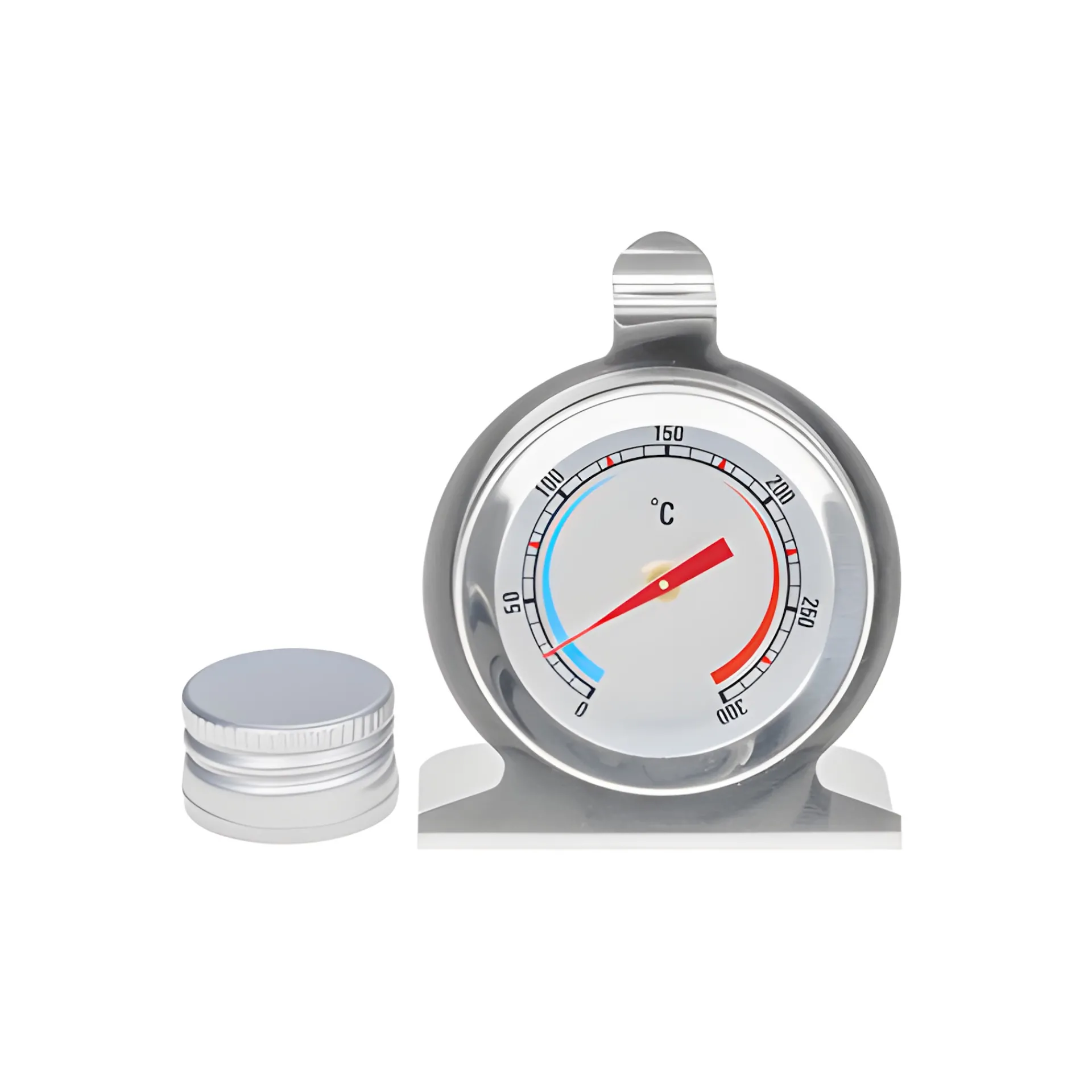 Das Küchenthermometer hat eine übersichtliche Ableseskala mit einem großen Ziffernblatt und klaren blauen und roten Zonenanzeigen, sodass Sie die Ofentemperatur leicht ablesen können. Der Messbereich liegt zwischen 0 °C und 300 °C. Es hat einen stabilen Fuß und einen Haken und kann sowohl am Rost oder Backblech eingehängt als auch im Ofen aufgestellt werden.