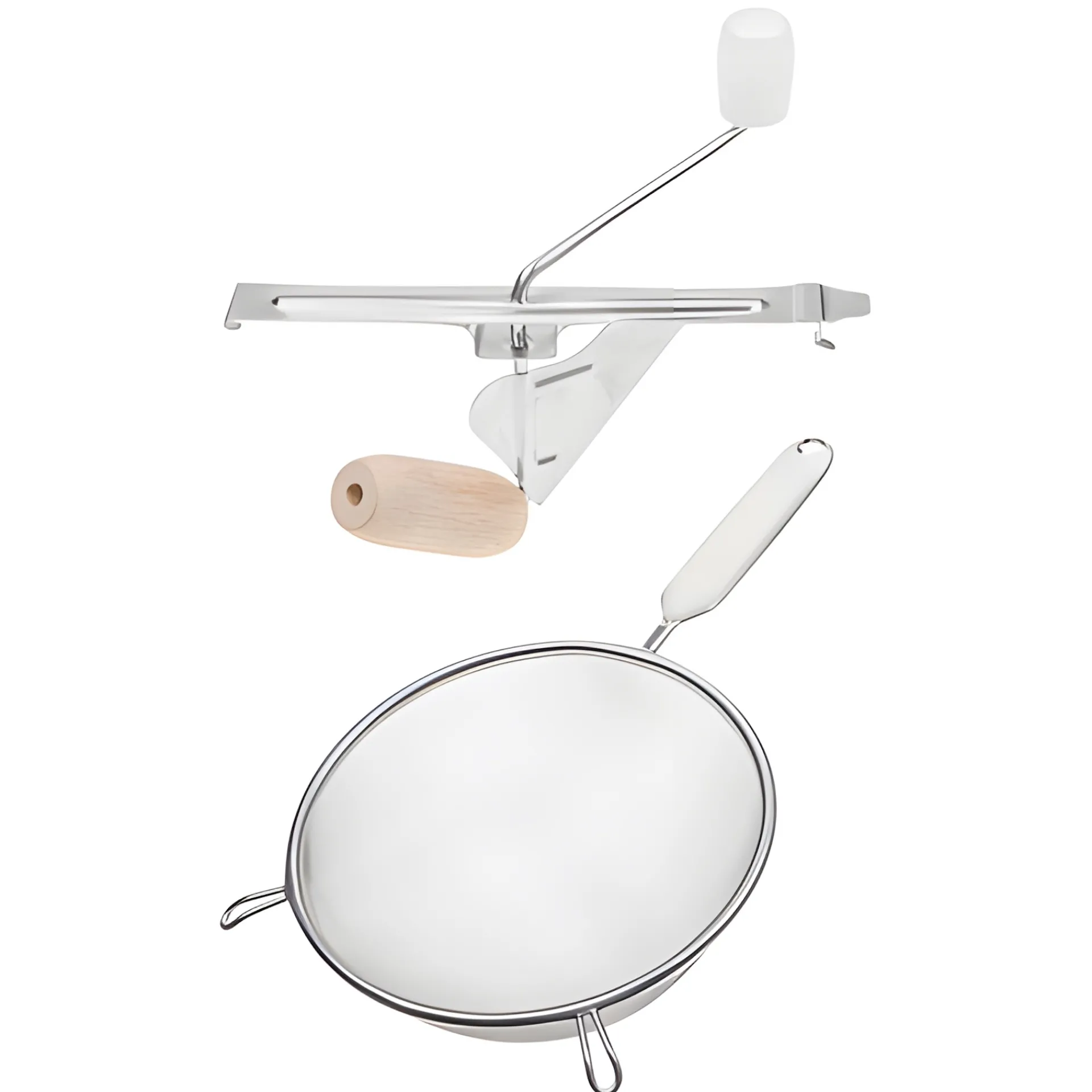 Dieses klassische Passiersieb mit feinmaschigem Sieb eignet sich ideal zum Pürieren und Entsaften von Gemüse und Obst, z. B. für Pürees, Saucen oder Babynahrung. Die Kurbel mit großem Drehknauf ermöglicht ein angenehmes Arbeiten, um z. B. Apfel- oder Beerenmus herzustellen. Die Auflagerasten garantieren sicheren Halt auf Töpfen und Schüsseln.
