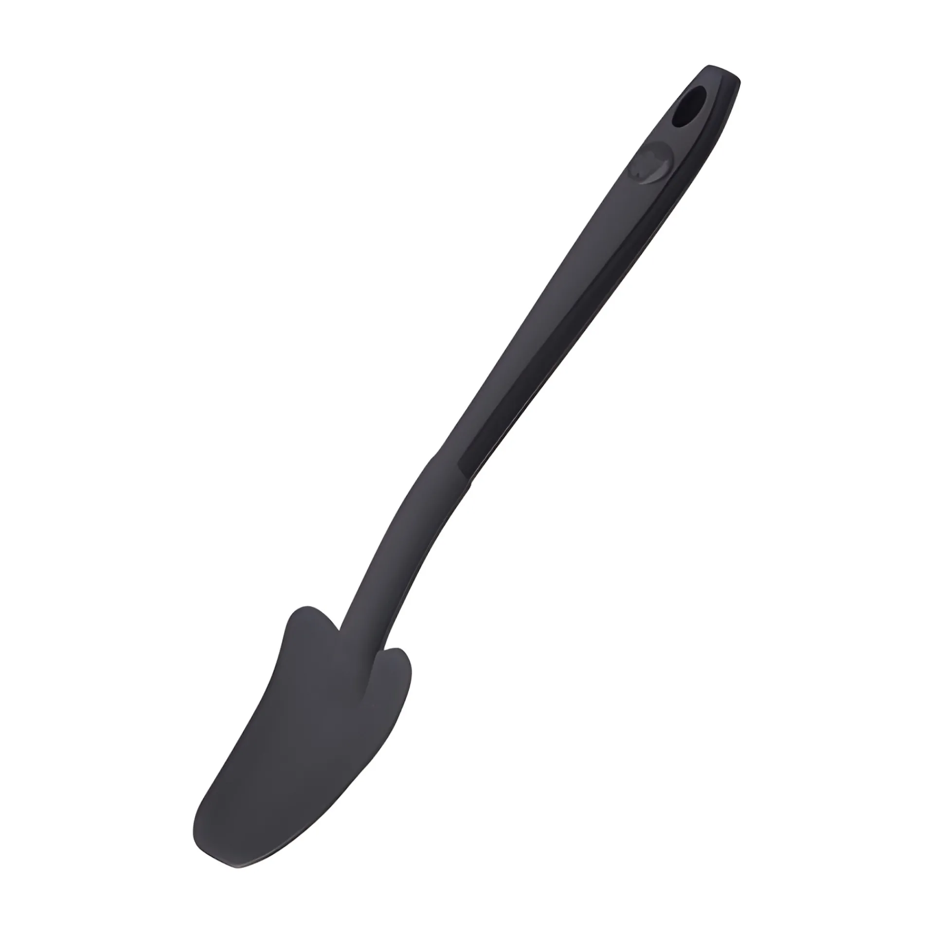Dank seiner abgerundeten Kanten ist der Löffel auch super zum Verzehren von Speisen und zum Füttern von Babys und Kleinkindern geeignet. Aufgrund seiner weichen, anschmiegsamen Form können sich die Kleinen nicht daran verletzen. Außerdem schützt er durch seine Silikonbeschichtung empfindliche Oberflächen z. B. von Töpfen oder kleinen Pfannen, wenn man darin umrührt. Optisch ist er mit seiner modernen Anthrazitfarbe ein Hingucker und kann auch sehr gut als Servierlöffel genutzt werden. Ein super Küchenhelfer, der Spaß macht. Er ist hitzebeständig bis 260 °C, BPA-frei und spülmaschinenfest.