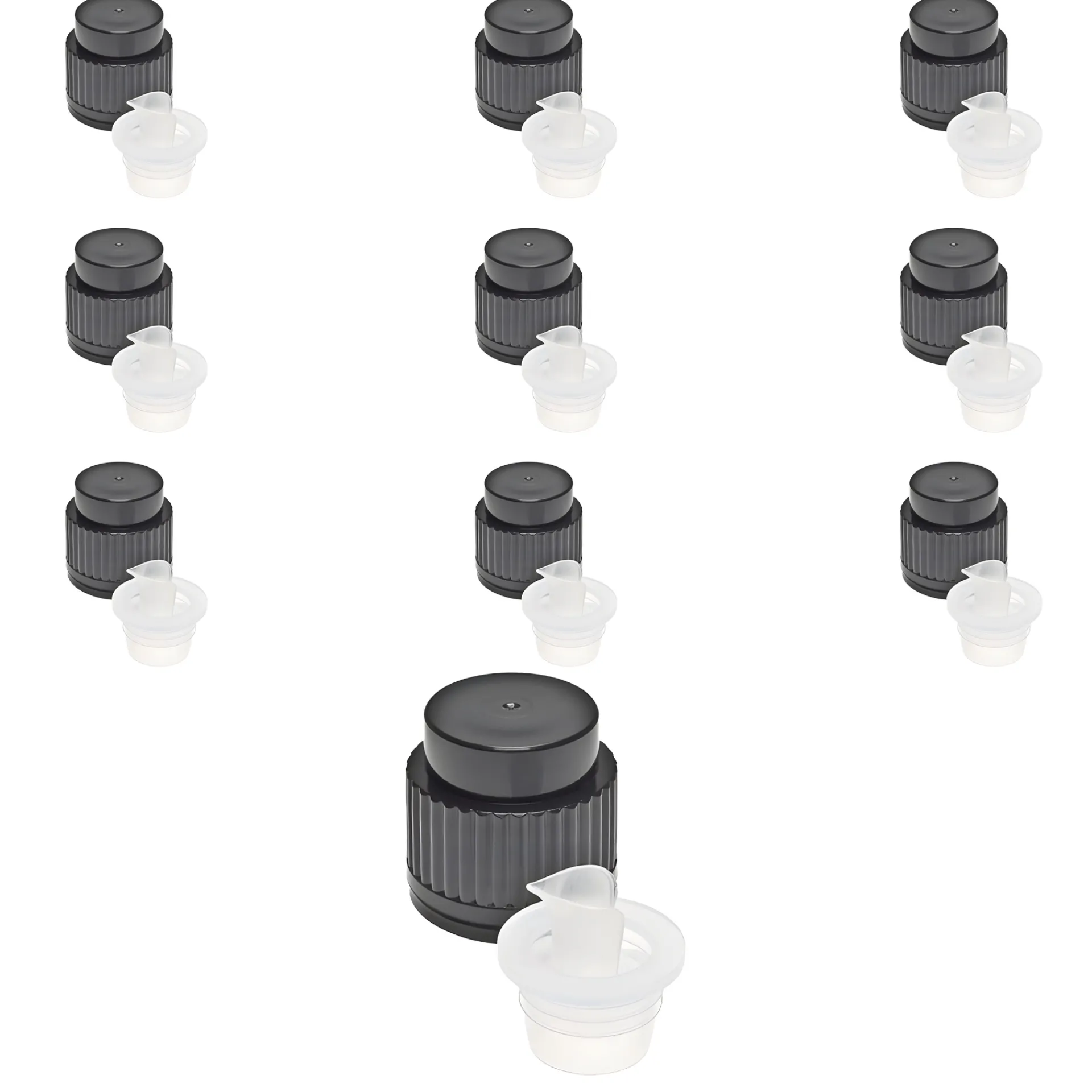 Der schwarze PP 28-Verschluss im praktischem 10er-Pack hat einen integrierten Ausgießer, der das Ausschütten von Flüssigkeiten erleichtert. Er verfügt über einen Originalitätsring zur Versiegelung, der beim ersten Öffnen der Flasche abspringt.