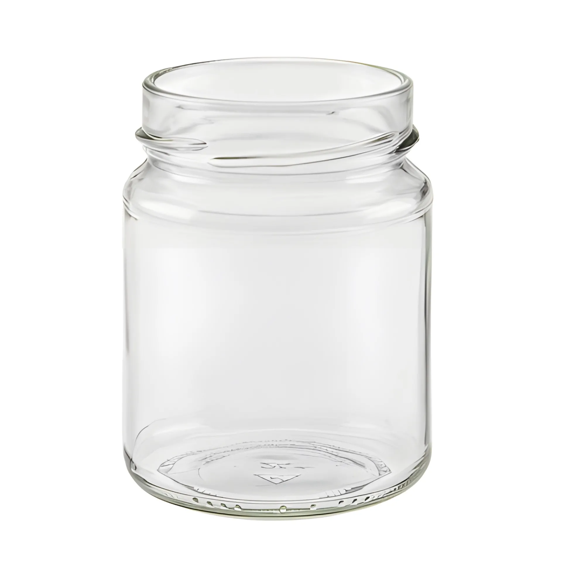Dieses Glas wirkt aufgrund der klaren Linienführung besonders modern. Es verjüngt sich jeweils nur ganz leicht in Richtung Mündung und Boden, sodass die zylindrische Grundform den visuellen Eindruck bestimmt. Mit einem passenden tiefgezogenen Twist-Off-Deckel lässt sich die schnörkellose Optik noch verstärken. Wegen der breiten Öffnung eignet sich das Rundglas nicht nur als elegantes Einmach- oder Marmeladenglas, sondern auch für Kräuter und andere Füllgüter, die mit der Hand entnommen werden.