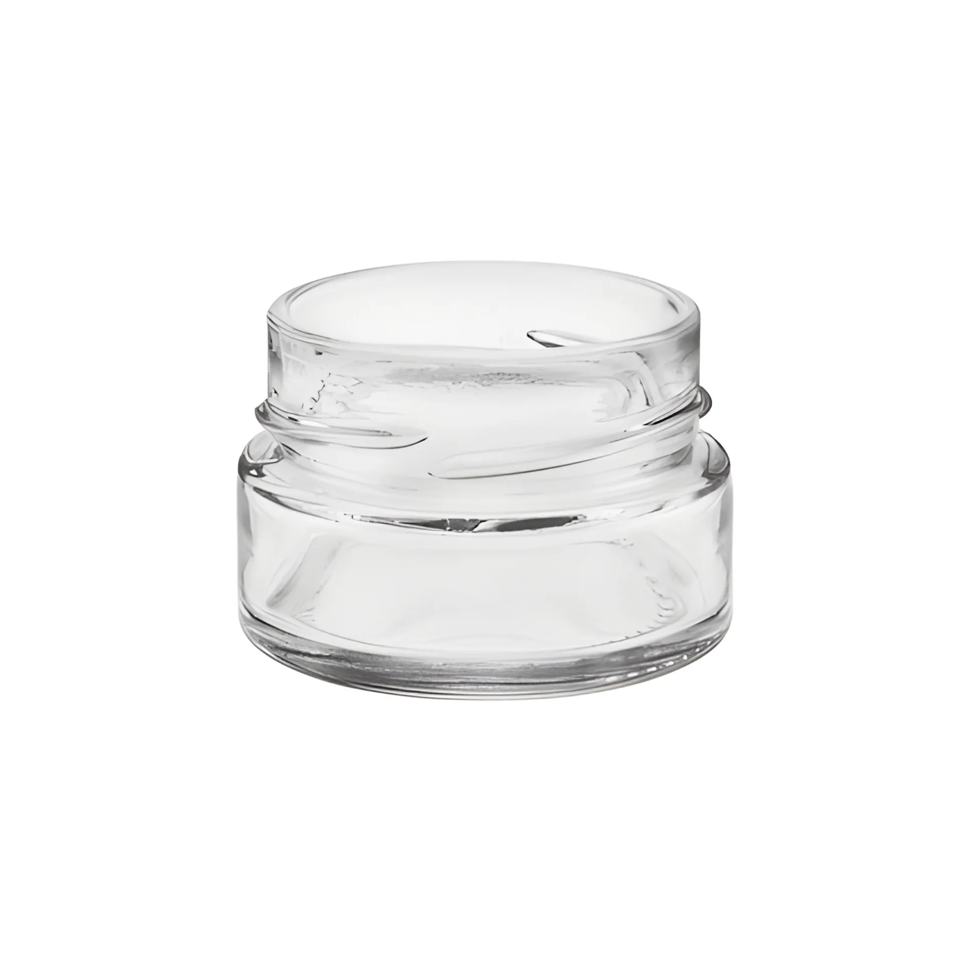Dieses Glas bekommt seine besondere Optik durch die tiefgezogene Mündung, die mit einem TO 58 Deep Verschluss perfektioniert werden kann. Die elegante Form kann gleichermaßen für kleine Probiergläschen und Portionsabfüllungen von Lebensmittel wie Honig, Konfitüre und Senf, als auch für Salben und Cremes genutzt werden.