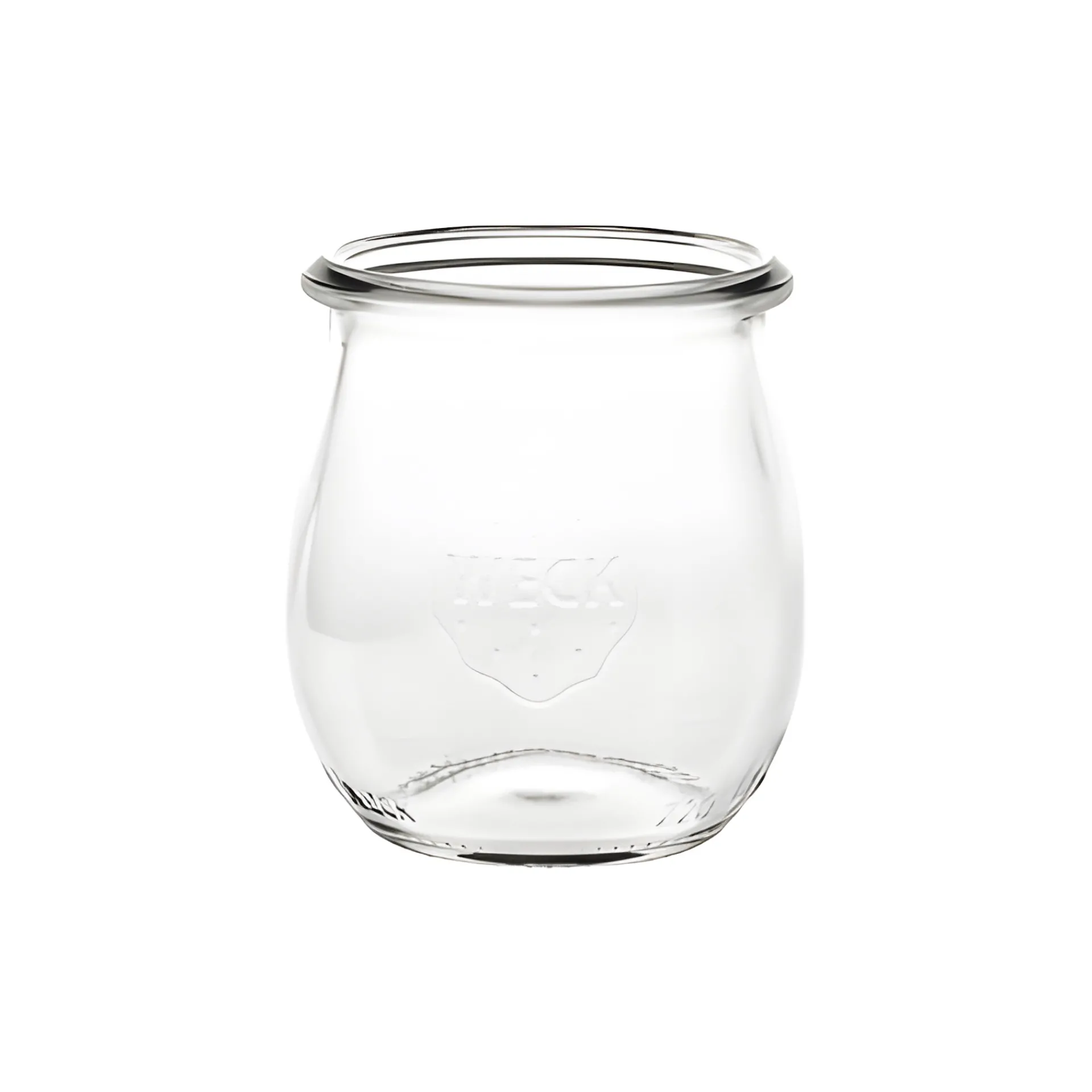 Dieses Mini-Glas aus dem Hause WECK bezaubert durch seine hübsche Tulpenform und sein kleines Format. Mit einem Volumen von 220 ml eignet es sich perfekt zum Einwecken von Marmelade und Gelee oder sauer eingelegte Mix Pickles, die direkt in dem schönen Glas serviert werden können. Nimmt man den traditionellen WECK-Verschluss mit rotem Gummiring und den Metallklammern ab, kann man das Glas mit dem aufgelegten Glasdeckel oder Frischhaltedeckel vor dem Servieren prima im Kühlschrank aufbewahren. So kommt man später schnell an die Leckereien. Durch die breite Öffnung lässt sich der Inhalt leicht einfüllen und ganz einfach herauslöffeln.