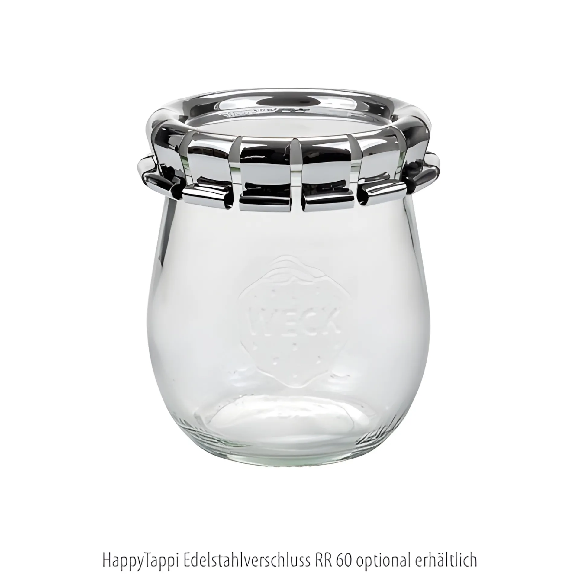 Das Tulpenglas mit einer RR 60-Mündung und dem WECK-Logo ist ein echter Klassiker und wird auf jedem Esstisch und Buffet zum schönen Blickfang. Prima auch für Grillpartys geeignet, bei denen die traditionellen Einweckgläser mit Kräuterbutter, Chutney, Senf oder einer leckeren selbstgemachten Barbecue-Soße befüllt werden können. Eine ideale Verpackung für Gastgeschenke und kleine Mitbringsel, die den selbstgemachten Köstlichkeiten eine Extraportion Charme verleihen.