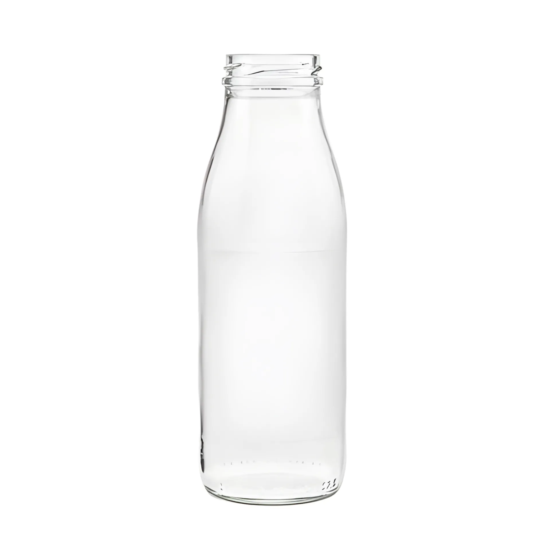 Formschöne Glasflasche mit einem halben Liter Fassungsvermögen, die sich sehr gut für Sirup, Saft, Milch und Soßen eignet. Dank der weiten Öffnung können auch dickflüssige Tomatensoße und Ketchup in der klassischen Abfüllflasche eingekocht werden. Eine gut sichtbare Etikettierfläche mit einer Höhe von ca. 83 mm und einem Durchmesser von etwa 67,5 mm sorgt dafür, dass Banderolen, Etiketten und Labels exakt auf der Milchflasche angebracht werden können.