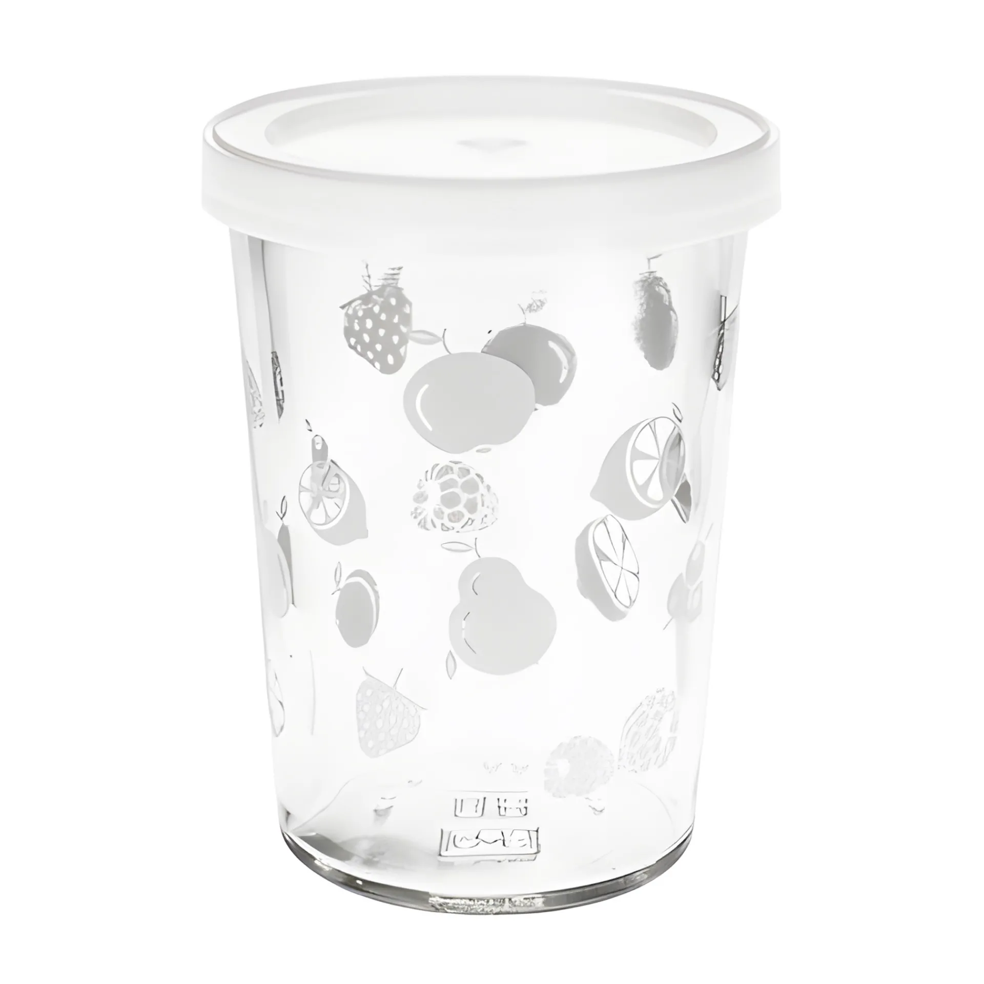 Jetzt wird es fruchtig! Ob Getränke, Smoothies, Joghurtdrinks oder Tee: Aus diesem schönen Sturzglas in Becherform können Getränke aller Art genossen werden. Das Glas ist mit verschiedenen Früchten in Weiß bedruckt, was es zum perfekten Gefäß für frische Obstvariationen macht. Es eignet sich natürlich auch als Servierglas für Nachspeisen, Fingerfood oder Schichtjoghurt. Kombiniert mit einem praktischen Frischhaltedeckel können selbstgemachte Köstlichkeiten und Getränke auch hervorragend in diesem formschönen Becherglas transportiert werden, das sich auch als Trinkglas sehr gut eignet.