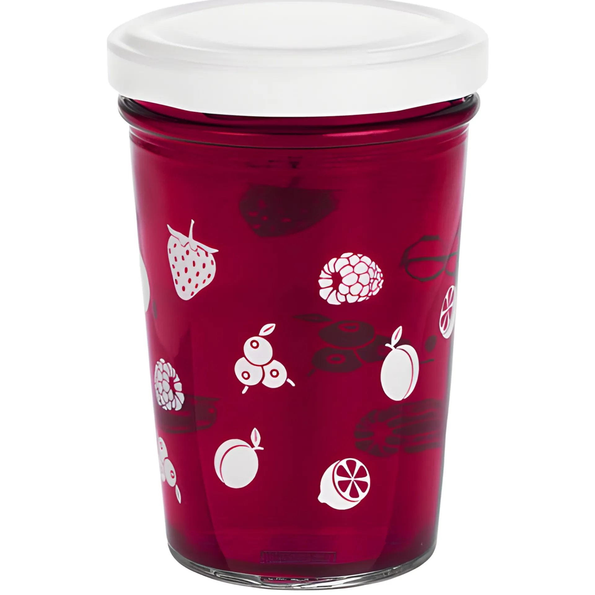 Jetzt wird es fruchtig! Ob Getränke, Smoothies, Joghurtdrinks oder Tee: Aus diesem schönen Sturzglas in Becherform können Getränke aller Art genossen werden. Das Glas ist mit verschiedenen Früchten in Weiß bedruckt, was es zum perfekten Gefäß für frische Obstvariationen macht. Kombiniert mit einem Twist-Off-Deckel wird es zum perfekten Marmeladenglas, dank der Sturzform eignet es sich auch hervorragend für kleine Kuchen im Glas und als Dessertbecher.