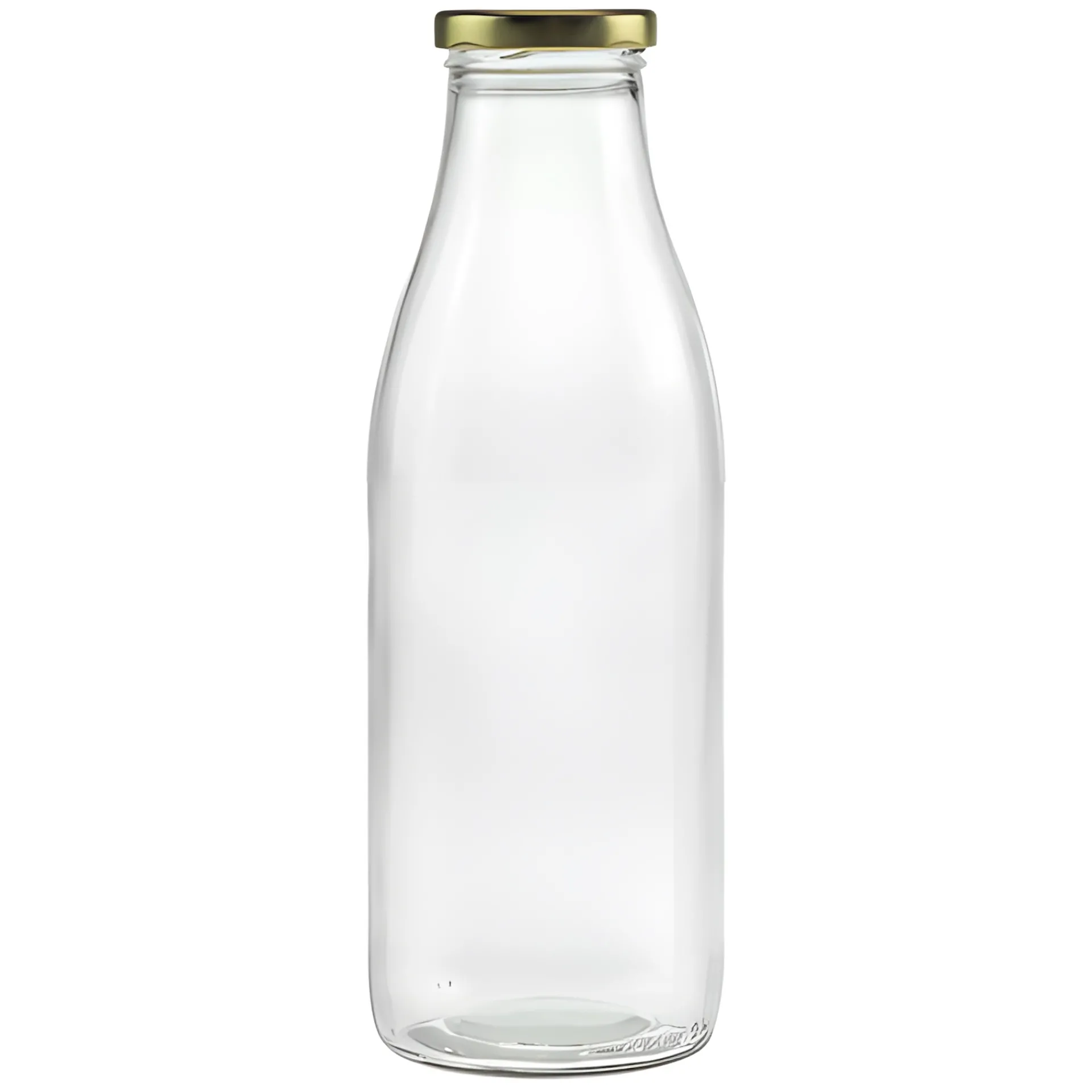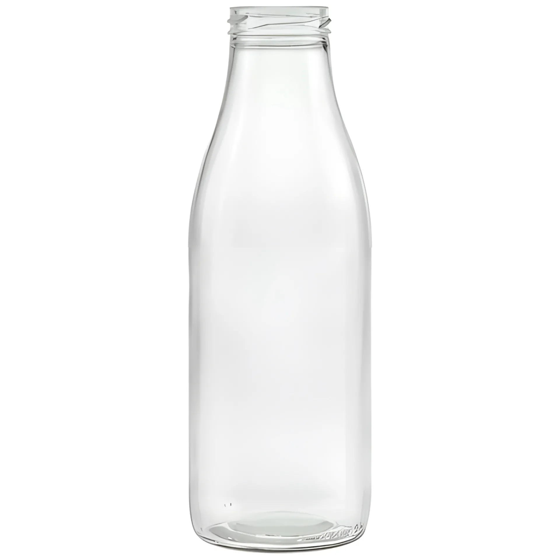 Die Milchflasche mit Twist-Off-Mündung hat eine leicht eingezogene Etikettierfläche mit einer Höhe von 95 mm und einem Durchmesser von 79 mm.