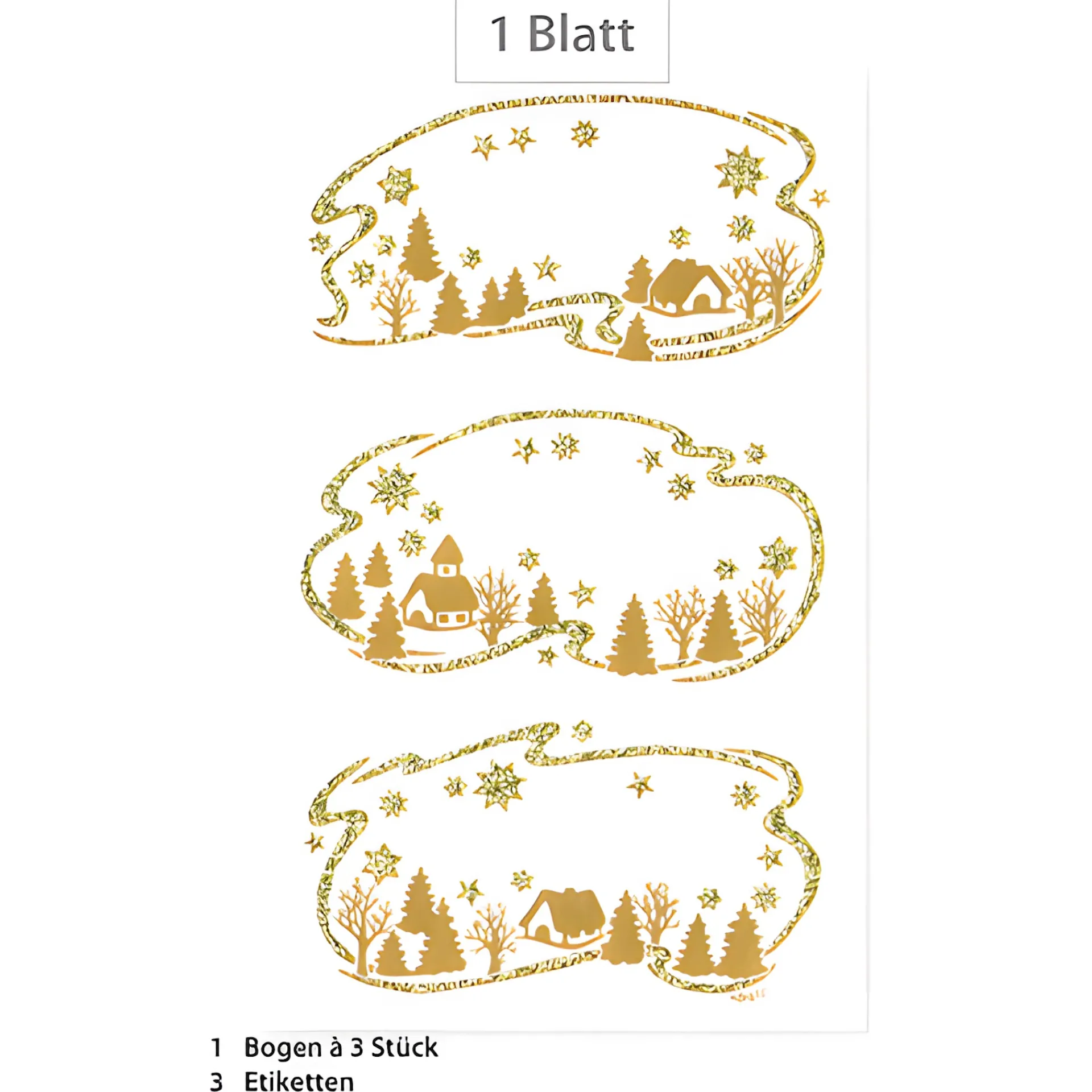 Informationen zum Artikel: Weihnachtsetiketten ‚Winterlandschaft‘ beglimmert, 3 Stück