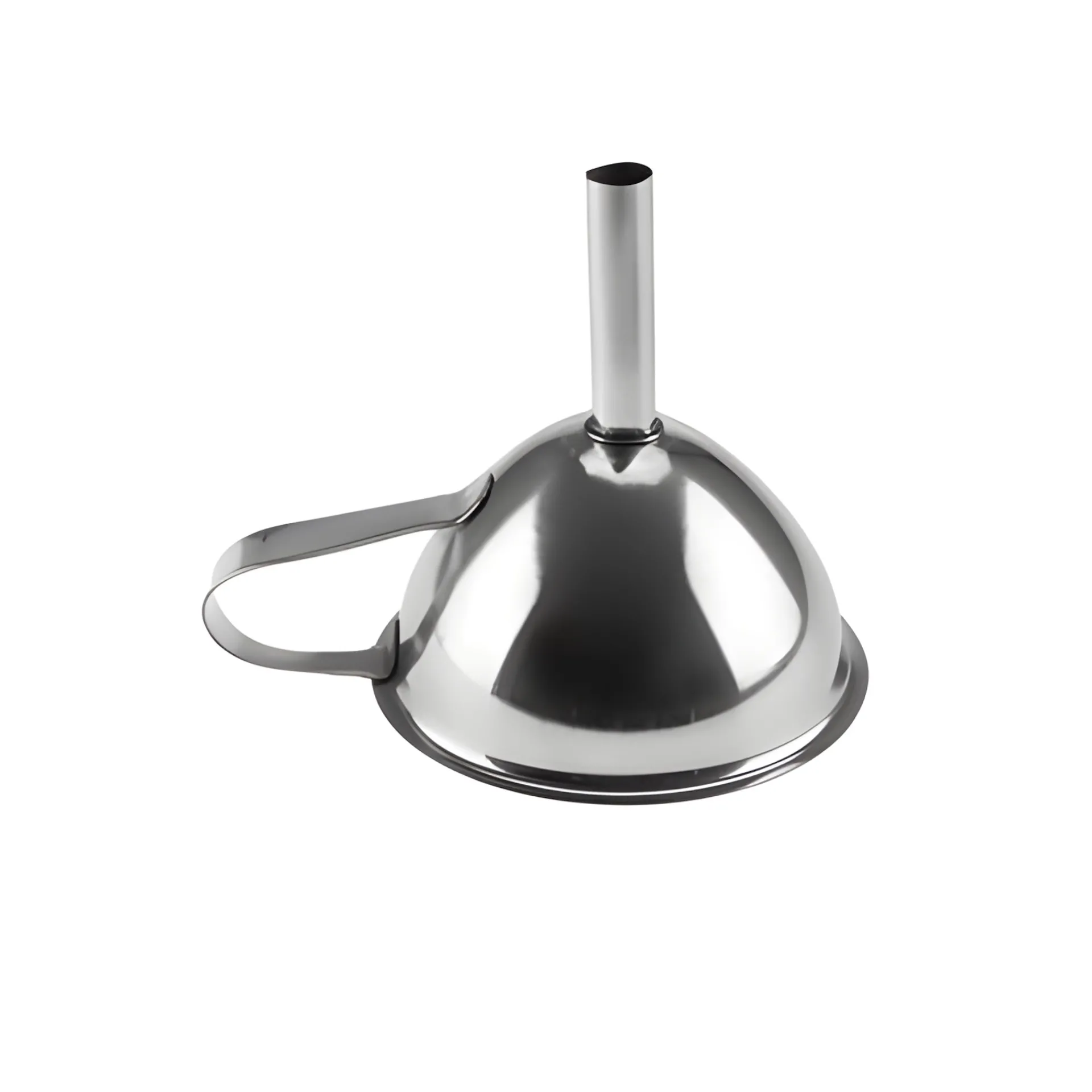 Stabiler Trichter aus Edelstahl mit praktischem Henkel, der gut in der Hand liegt und das Abfüllen erleichtert. Der Durchmesser des Einfüllröhrchens beträgt ca. 16 mm, wodurch sich der Metalltrichter als Einfüllhilfe für die meisten Standardflaschen und Mündungen eignet. Ein unerlässlicher Helfer zum sauberen Abfüllen und Umfüllen von Sirup, Likör und Spirituosen!